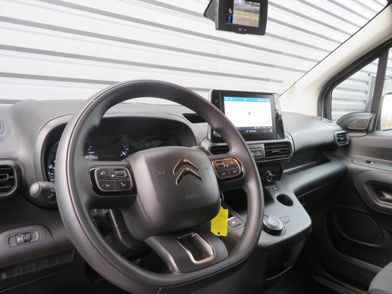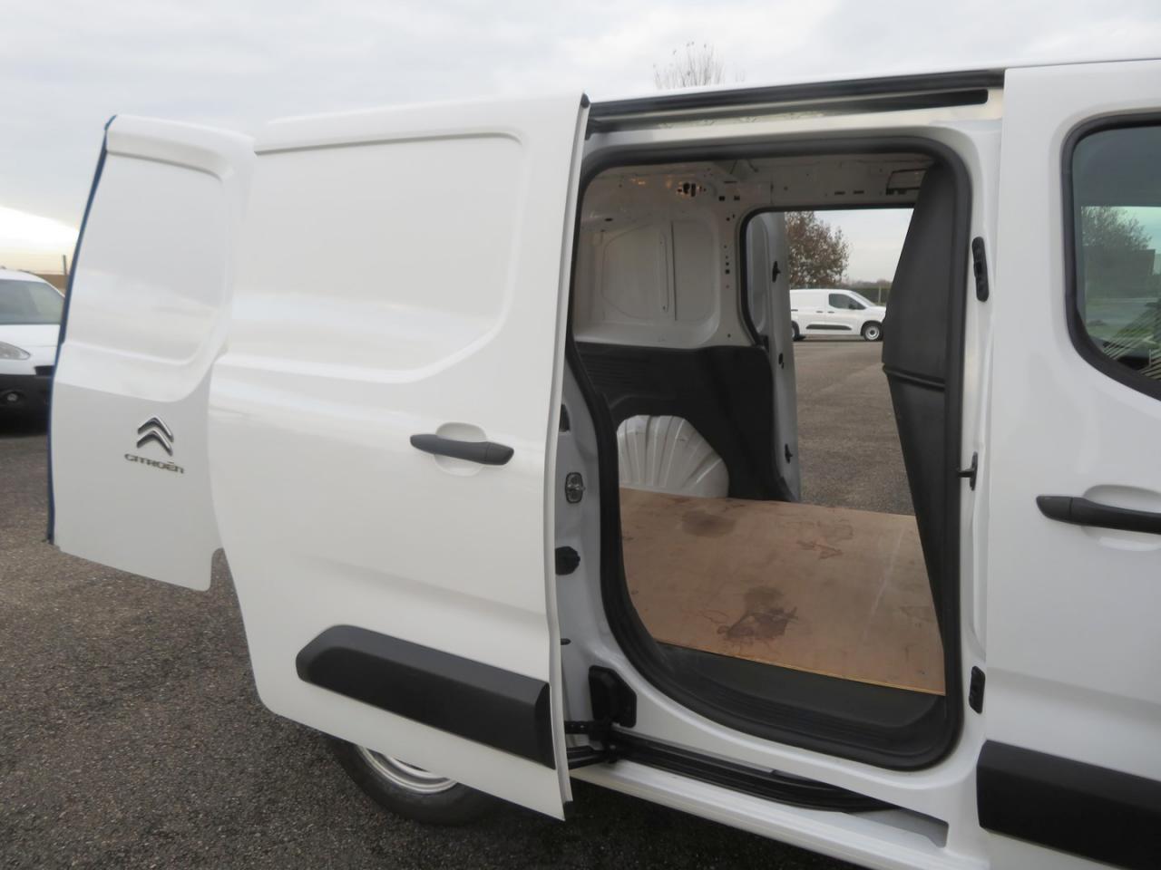 6 anneaux d'arrimage au sol dans la zone de chargementABS avec répartiteur électronique de freinage (REF) et aide au freinage d'urgence (AFU)Aide au stationnement arrière avec caméra de reculAide au démarrage en penteAirbag frontal conducteurAllumage automatique des feux de croisementBac de porte avantBaguettes de protection latérales noires teintées masseBoîte à gants inférieure ferméeBoîte à gants supérieure Top Box fermée (réfrigérée si climatisation)Bouchon / trappe à carburant verrouillablesBoucliers noirs teintés masseCapucine transversale de rangement ouverteCITROËN Connect Box avec Pack SOS et assistance inclusCitroën Connect Nav sur tablette tactile 8" avec Mirror ScreenClimatisation manuelleCloison pleine fixe (avec crochet porte-habit)Condamnation centralisée avec plip 3 boutonsContrôle dynamique de conduite (ESP) avec fonction anti-patinage (ASR)Coques de rétroviseurs noires teintées masseDétection de sous-gonflage indirecteEclairage d'accueil et d'accompagnementEssuie-glaces avant automatiqueEssuie-vitre avant avec système de lavage 'Magic Wash'Frein de stationnement électriqueJantes tôle 16" grises avec cabochonKit mains libres Bluetooth et prise USBOrdinateur de bordPack acoustiquePeinture opaque Blanc BanquisePneumatiques 205/60 R16Poignées de portes extérieures noires teintées massePorte latérale droite coulissante tôléePortes arrière battantes 60/40 tôlées avec ouverture à 180°Prise 12 V sur planche de bordProjecteurs antibrouillard avantRails de PLC avec enjoliveurs noirs teintés masseRangement fermé derrière le combinéRégulateur et limiteur de vitesseRétroviseurs extérieurs rabattables électriquement et lève-vitres avant électriques séquentielsRétroviseurs extérieurs réglables électriquement et dégivrantsRevêtement moquette dans l'habitacleRoue de secours homogèneSellerie tissu Mica GreySiège conducteur confort avec réglage en hauteur, réglage lombaire, rangement sous siège et accoudoirSiège passager individuel réglable en inclinaison et en longueurSurround Rear VisionVolant mousséVolant multifonctionsVolant réglable en hauteur et en profondeurZone de dépose pour smartphone