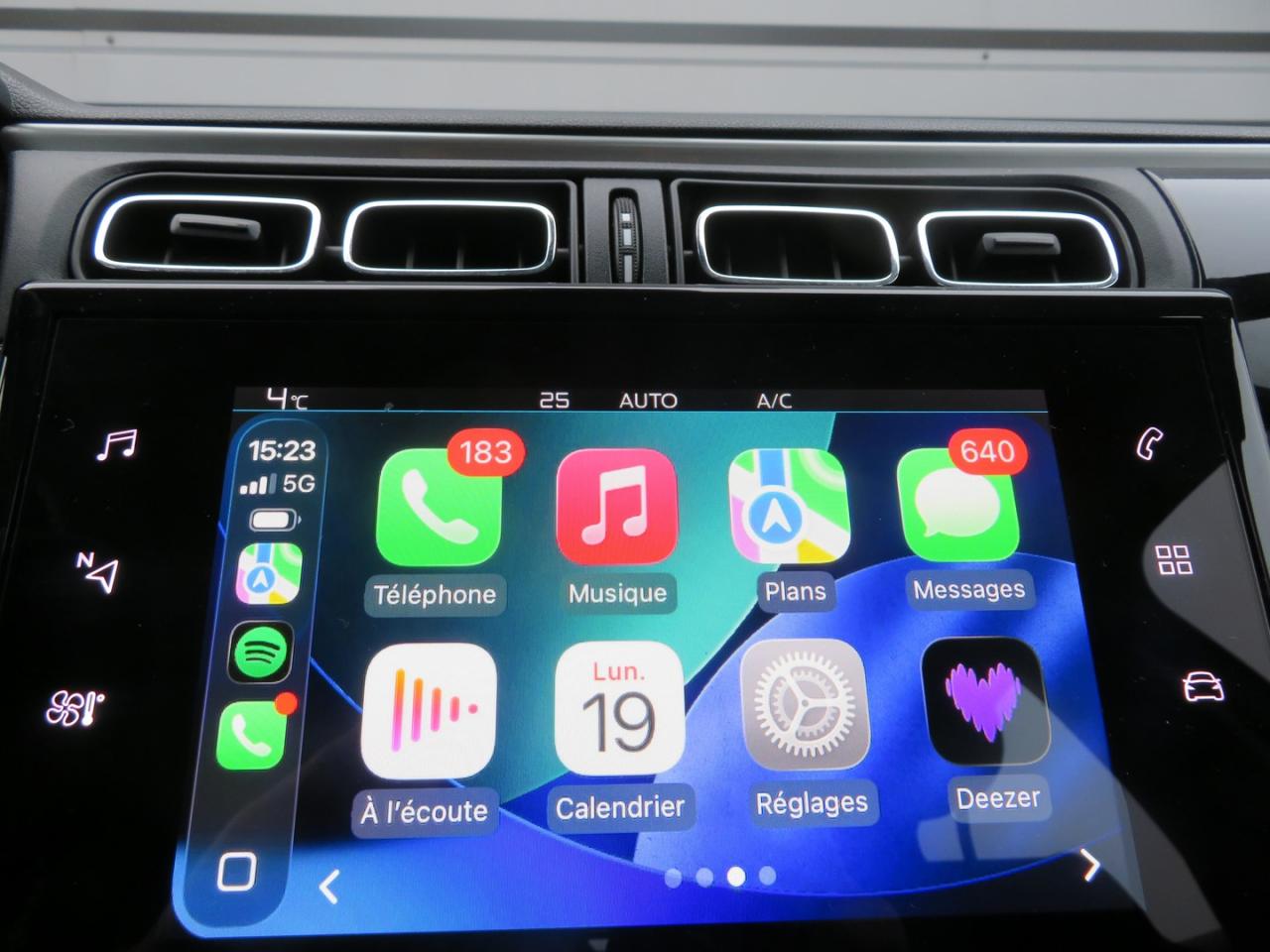 ABS avec répartiteur électronique de freinage (REF) et aide au freinage d'urgence (AFU)Accoudoirs de panneaux de portes textile avec sangleAdhésifs de custodes avec motifAide au démarrage en côteAide au stationnement arrièreAirbags frontaux, latéraux AV et rideauxAllumage des feux de détresse en cas de forte décélérationBandeau de planche de bord Noir Brillant avec cerclage Chrome SatinBanquette arrière fractionnable 2/3 - 1/3Caméra de recul avec visualisation sur tablette tactile 7"CITROËN Connect Box avec Pack SOS et assistance inclusCITROËN Connect Nav sur tablette tactile 7"Clignotants impulsionnelsClimatisation automatique avec fonction filtrage de l'airCommandes audio au volantCondamnation centralisée avec plipContrôle dynamique de stabilité (ESP)Décors extérieurs Noir BrillantDétecteur de sous-gonflageDirection à assistance électriqueElargisseurs d'ailes et bas de caisse noir matFeux arrière à effet 3DFeux diurnes à LEDJantes alliage 16’’ MATRIX DiamantéesKit mains libres Bluetooth et prise USBLève-vitres avant électriques séquentielsMirror ScreenOrdinateur de bordPack Color NoirPack SafetyPack Safety 2Pack VisibilitéPare-soleil avec miroir de courtoisie occultable côtés conducteur et passagerPavillon bi-ton avec coques de rétroviseurs extérieurs couleur pavillonPlafonnier avant et lecteur de cartesPoignées de portes extérieures couleur caissePrises 12 volts AVProjecteurs antibrouillardProjecteurs avant LEDRégulateur et limiteur de vitesseRétroviseurs extérieurs rabattables électriquementRétroviseurs extérieurs réglables électriquement et dégivrantsSécurité enfants manuelleSellerie tissu Mica GreySiège conducteur réglable en hauteurSystème Audio mp3 6HPSystème de fixation ISOFIX sur les sièges arrièreToit bi-ton Noir OnyxVitres arrière manuellesVolant en croûte de cuirVolant réglable en hauteur et en profondeur