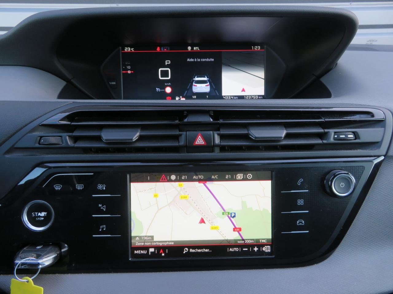 ABS avec répartiteur électronique de freinage (REF) et aide au freinage d'urgence (AFU)Aérateurs bi-zone en rang 2Accoudoirs centraux réglables en inclinaison sur sièges avantAide au démarrage en côteAide au stationnement avant/arrièreAirbag frontaux conducteur et passagerAirbags latérauxAirbags rideauxAlerte attention conducteurAlerte de franchissement Involontaire de ligneAllumage automatique des feux de détresseAllumage automatique des projecteursBacs de portières avant avec logements pour bouteillesCITROËN Connect Nav avec CITROËN Connect BoxClimatisation automatique bi-zoneCoffee Break AlertCommandes de la boîte de vitesses au volant par sélecteur et palettesCommutation automatique des feux de routeCondamnation automatique du coffre et des portes en roulantCondamnation centralisée avec plipConnecting Box kit mains libres Bluetooth et prise USBConsole centrale amovibleContrôle de Traction IntelligentContrôle dynamique de stabilité (ESP) et antipatinage (ASR)Coulissement des sièges arrière en rang 2Détecteurs de sous-gonflageEcran panoramique 12" HDEssuie-vitre arrièreEssuie-vitre avant avec intermittence indexée à la vitesseFeux diurnes à LEDFixations ISOFIX 3 points pour sièges enfants aux 3 places de rang 2Frein de stationnement électrique automatiqueIndicateur de température extérieure avec alerte risque de verglasJantes alliage 16" NOTOS (quatre), pneumatiques 205/60 R16Kit anticrevaison (compresseur et produit de colmatage)Lève-vitres électriques avant et arrière, séquentiels et antipincementLampe nomadeMirror ScreenOrdinateur de bord multifonctionPare-brise acoustiquePare-brise athermiquePare-soleil coulissants conducteur et passager avant avec miroir de courtoisie occultablePlafonnier avant avec éclairagePoches aumônières au dos des sièges avantPrise 12 volts à l'avant et à l'arrièreProjecteurs antibrouillard sans éclairage statique d’intersectionProjecteurs halogèneRégulateur - limiteur de vitesse programmableRétroviseur intérieur électrochromeRétroviseurs extérieurs à réglages électrique et dégivrantsRétroviseurs extérieurs rabattables électriquement avec éclairage d'approche à LEDReconnaissance des panneaux de limitation de vitesseSécurité enfants sur portes arrièreSellerie tissu Milazzo GreySiège conducteur réglable en hauteurSiège passager réglable en hauteurSièges arrière (trois) de même largeur et escamotables sur le plancher en rang 2Sièges arrière (trois) en rang 2 réglables longitudinalementSignature latérale chroméeSignature lumineuse à LEDSystème audio bi-tuner RDS MP3Système audio et commandes au volantSystème de navigation sur tablette tactile 7"Témoin et alerte de débouclage des ceintures de sécurité en rang 2Témoin et alerte de non-bouclage des ceintures de sécurité avantTablette aviation au dos des sièges avantTablette cache bagage dans le coffreTablette tactile 7" de contrôle des fonctionnalitésVitres latérales et lunette arrière surteintéesVolant cuir pleine fleurVolant réglable en hauteur et en profondeur