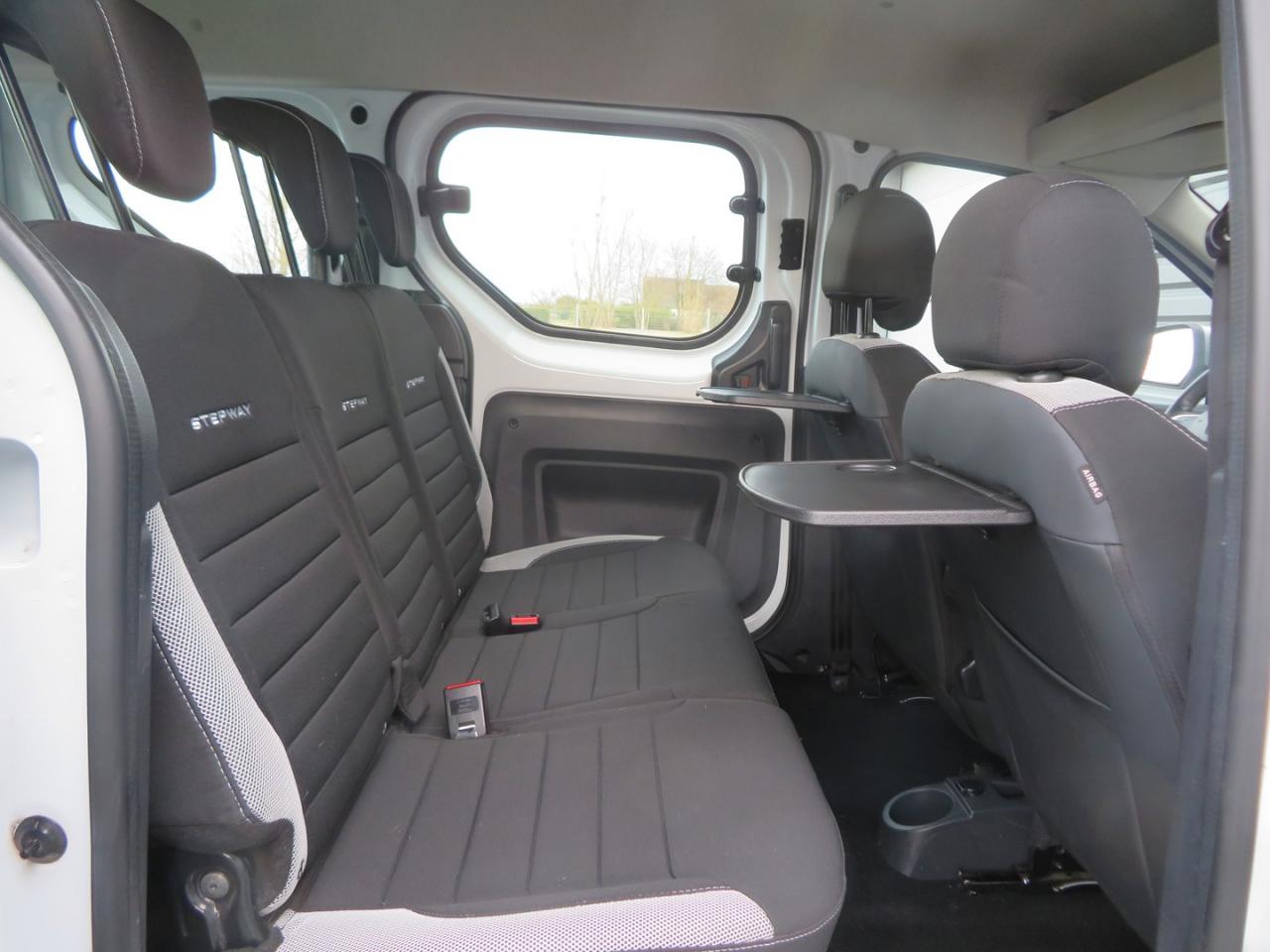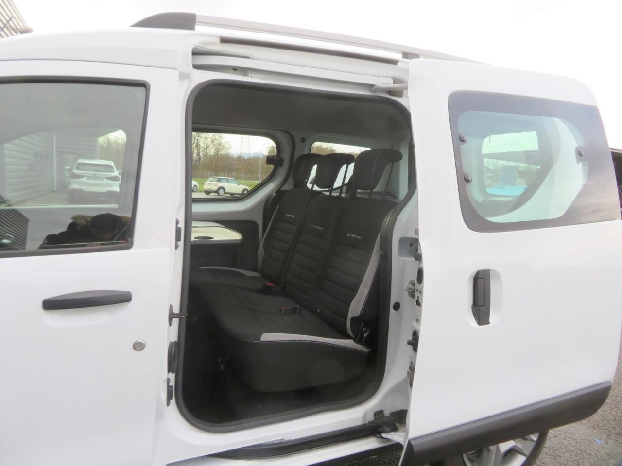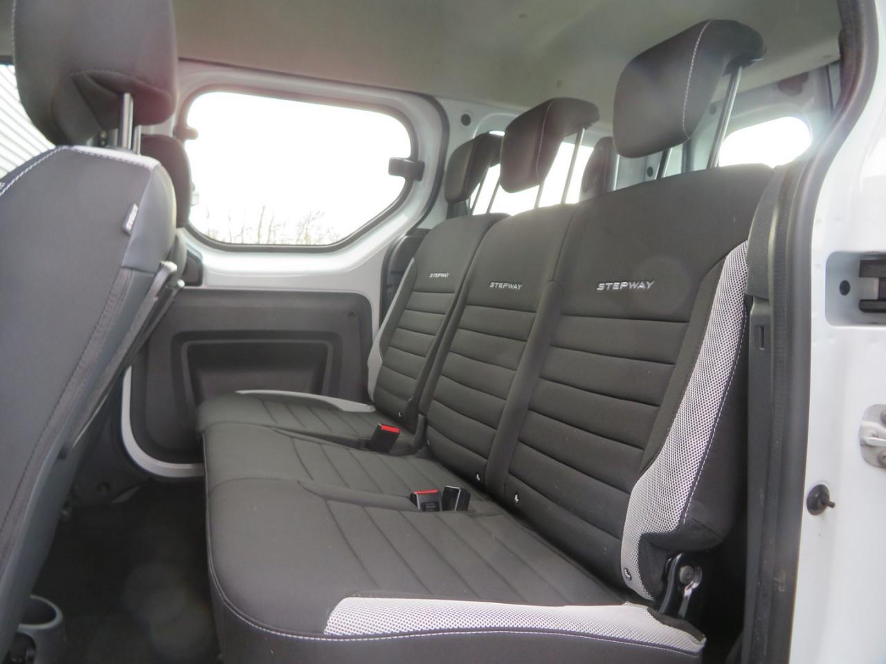 3 appuie-têtes arrière "virgule"ABS avec aide au freinage d'urgenceAide au démarrage en côteAirbag frontal conducteurAirbag frontal passager déconnectableAirbags latéraux avantAlerte visuelle et sonore du non-bouclage ceinture avantAntidémarrage codéBacs de rangement dans les portes avantBaguettes de protection latérale noiresBanquette de 2e rangée 1/3-2/3 dossier rabattable, mise en portefeuilleBarres de toit couleur Dark MetalBoîte à gants ferméeBoucliers ton carrosserie à l'avant et noirs à l'arrièreCache-bagages à enrouleurCapucineCeintures de sécurité avant réglables en hauteurCerclage des compteurs peint chrome satinéCerclages chrome satiné autour du pommeau de levier de vitesseChauffage avec recyclage d'air et conduits d'air aux places arrièreChauffage et ventilation à 4 vitessesClimatisation manuelleCompte-toursCondamnation centralisée des portes à distanceDirection assistéeEclairage du coffreEmplacement porte canettes sur console centrale avantEmplacement porte-canettes sur console centrale arrièreEntourage d'aérateurs chrome satinéEspace de rangement ouvert au-dessus de la boîte à gantsFaçade centrale noir brillant avec enjoliveur chrome satinéFeux de jourFixation ISOFIX pour sièges enfants sur 3 places arrièreIndicateur de température extérieureJantes design 16'' Bayadere Dark MetalKit de gonflageLève-vitre électrique conducteur impulsionnelLève-vitres avant électriquesLunette arrière dégivrante avec essuie-glaceMedia Nav Evolution DABOrdinateur de bordPack Confort PlusPack Look StepwayPanneau latéral gauche vitréPlafonnier avantPoches aumônières au dos des sièges avantPoignées de porte intérieures Chrome SatinéPorte latérale droite coulissante vitréePortes battantes arrière vitréesPrise 12 V à l'arrièrePrise 12V à l'avantProjecteurs antibrouillardRadar de reculRangement en haut de planche de bord ouvertRégulateur et limiteur de vitesseRétroviseurs Dark MetalRétroviseurs extérieurs électriques et dégivrantsSellerie StepwaySystème de contrôle de trajectoire (ESC) avec fonction antipatinage (ASR)Système de détection de la pression des pneusTablettes aviation au dos des sièges avantTapis plastique de coffre amovibleTémoin de portes non ferméesVolant Softfeel