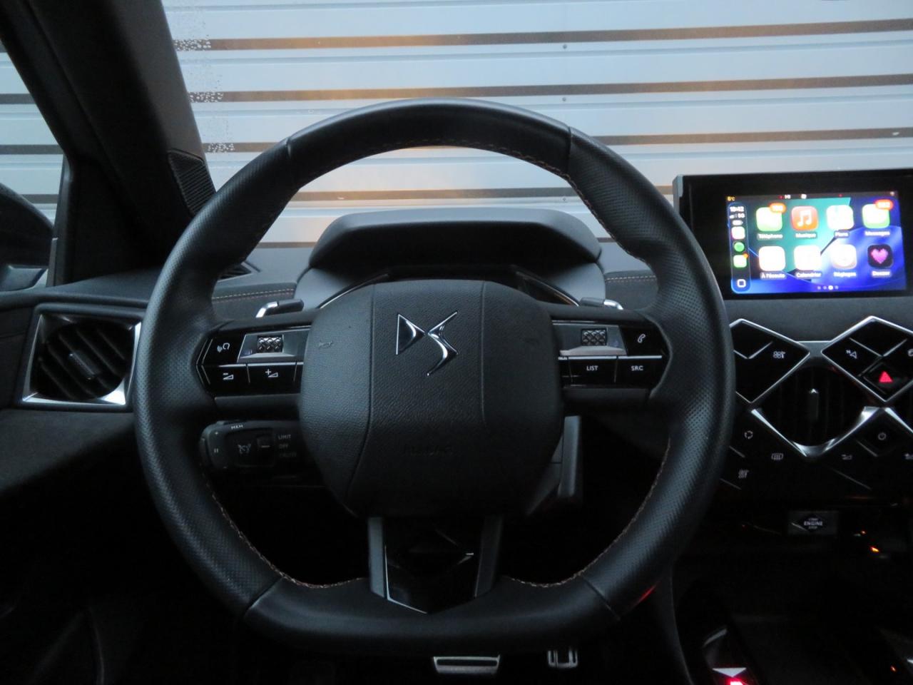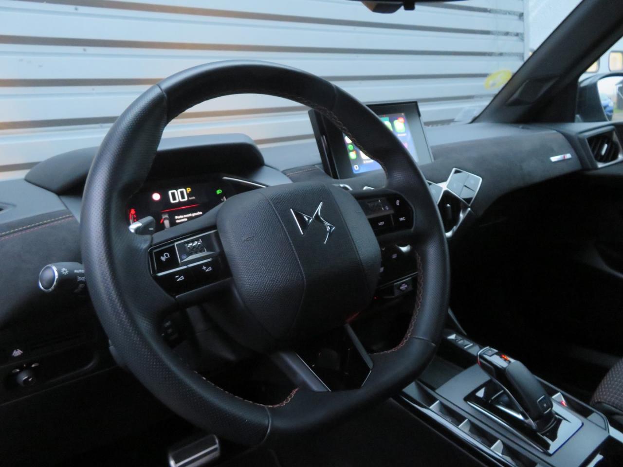 3e feu stop à LEDABS avec répartiteur électronique de freinage (REF) et aide au freinage d'urgence (AFU)Aide au démarrage en côteAide au stationnement arrièreAirbags frontaux conducteur et passager (déconnectable côté passager)Airbags latéraux arrière de thoraxAirbags latéraux type "thorax" pour conducteur et passager avantAirbags rideaux aux places avant et arrièreAlerte Active de Franchissement Involontaire de Ligne (AAFIL)Allumage automatique des feux de détresseAllumage automatique des projecteursAntenne radio invisibleAppuis-tête AVAvertisseur de survitesseBadge de planche de bord DS PERFORMANCE LineBadges latéraux sur portes avant PERFORMANCE LineBanquette arrière 2/3 - 1/3 et 3 appuie-têtesBecquet de toitBoîte à gantsBoitiers de rétroviseurs extérieurs noir brillantCanule d'échappement chroméeCentre de roue CarminClignotants impulsionnels 3 coupsClimatisation automatiqueCombiné de bord numériqueCondamnation automatique des portes, du hayon et de la trappe à carburant en roulantContrôle de stabilité de l'attelageContrôle de Traction IntelligentContrôle dynamique de stabilité (ESP) avec antipatinage des roues (ASR)Crochets d'arrimage dans le coffreDémarrage par bouton poussoirDétection de sous-gonflage des pneumatiquesDirection à assistance variableDS Sensorial DriveEclairage d'accompagnement "Follow me Home"Eclairage d'accueil automatiqueEclairage de coffreEclairage de plaque d’immatriculation à LEDEssuie-glace à déclenchement automatiqueEssuie-glace arrière avec déclenchement automatique en marche arrièreFaçade centrale à commandes sensitivesFeux antibrouillard arrièreFeux arrière halogèneFeux diurnes à LEDFiltre à charbon actifFixations Isofix pour siège passager avant et places latérales arrièreFrein de stationnement électrique automatiqueFreinage d'urgence automatique jusqu'à 85 km/hGuide utilisateur numériqueIndicateur de rapport engagéInspiration DS PERFORMANCE LineJantes alliage 17" DUBAILève-vitres avant et arrière électriques, séquentiel et anti-pincement coté conducteurLunette arrière dégivranteOrdinateur de bordPalettes au volantPare-brise teinté et acoustiquePieds de rétroviseurs extérieurs couleur carrosseriePoignées de maintien avant (coté passager)Poignées de portes affleurantesPoignées de portes intérieures chroméesPorte-gobelets à l'avantPortières avec lécheurs de vitres invisiblesPrise 12 volts à l'avantProjecteurs halogèneRangements latérauxReconnaissance des panneaux de vitesse et préconisationRéglage en hauteur manuel du siège conducteurRégulateur et limiteur de vitesseRétroviseur intérieurRétroviseurs extérieurs rabattables électriquementRétroviseurs extérieurs réglables électriquementRoue de secours “galette”Sélecteur de mode de conduiteSièges avant avec réglage de la longueur d'assiseSystème audio sur tablette tactile 7" avec Mirror Screen et radio numérique ( USB, Bluetooth)Système sonore polyphonique à 8 HPTémoin et alerte sonore de non-bouclage des ceintures de sécurité avant et arrièreVerrou sur porte conducteurVitres latérales et lunette arrière surteintéesVolant réglable en hauteur et en profondeur