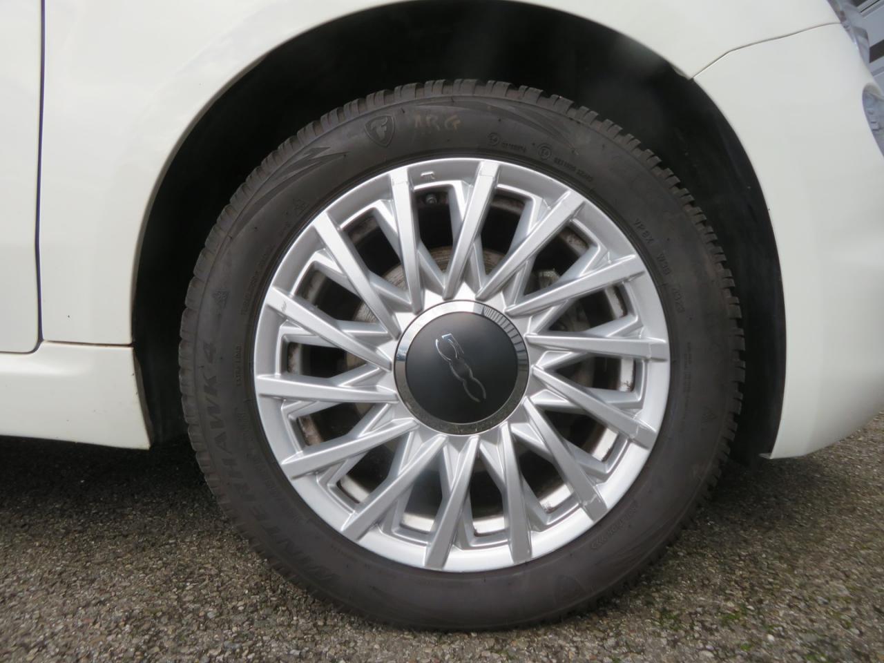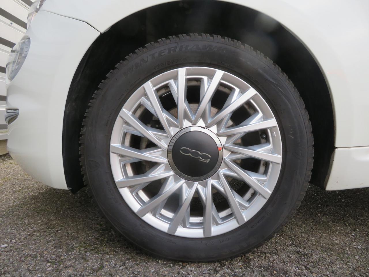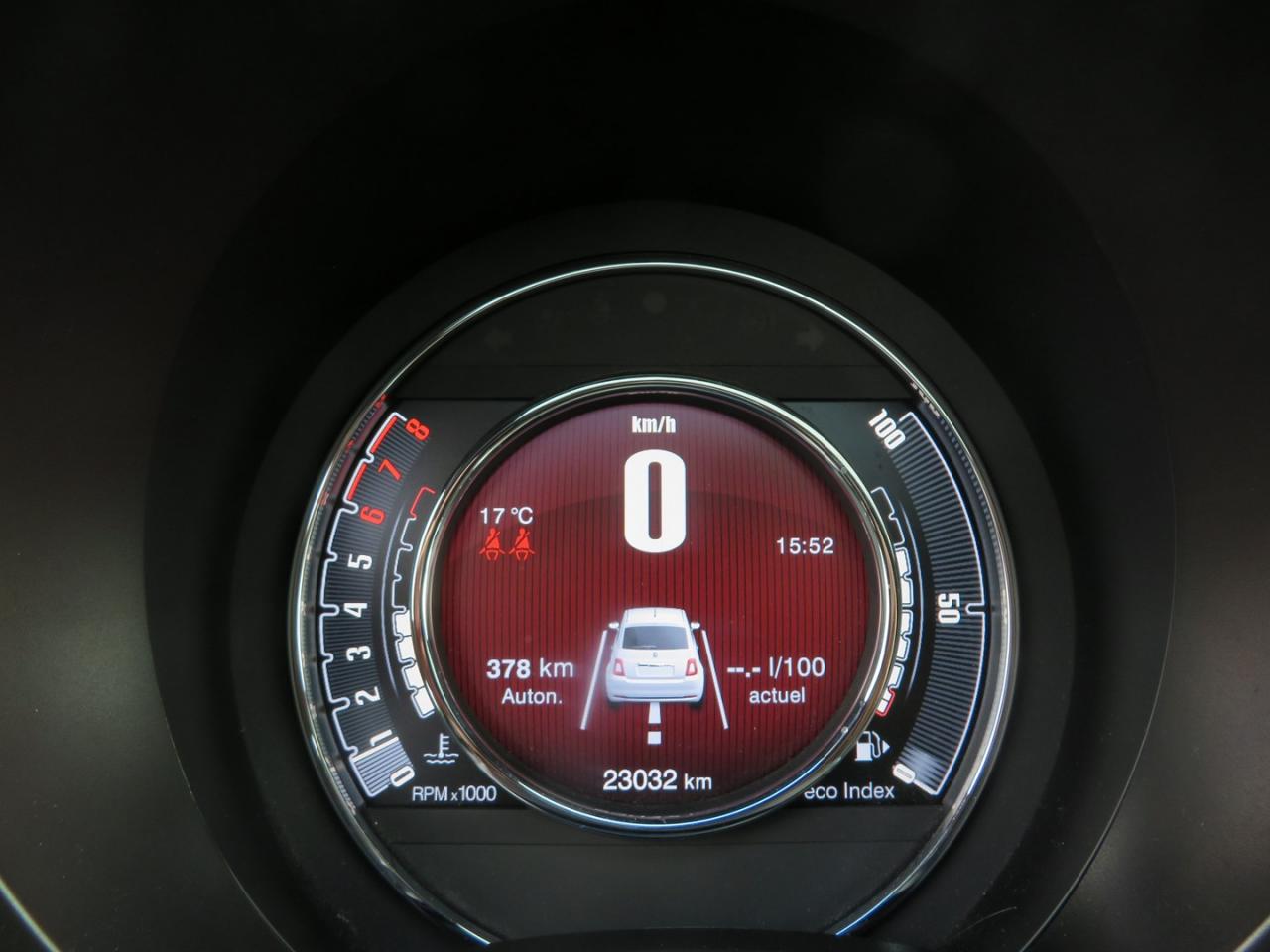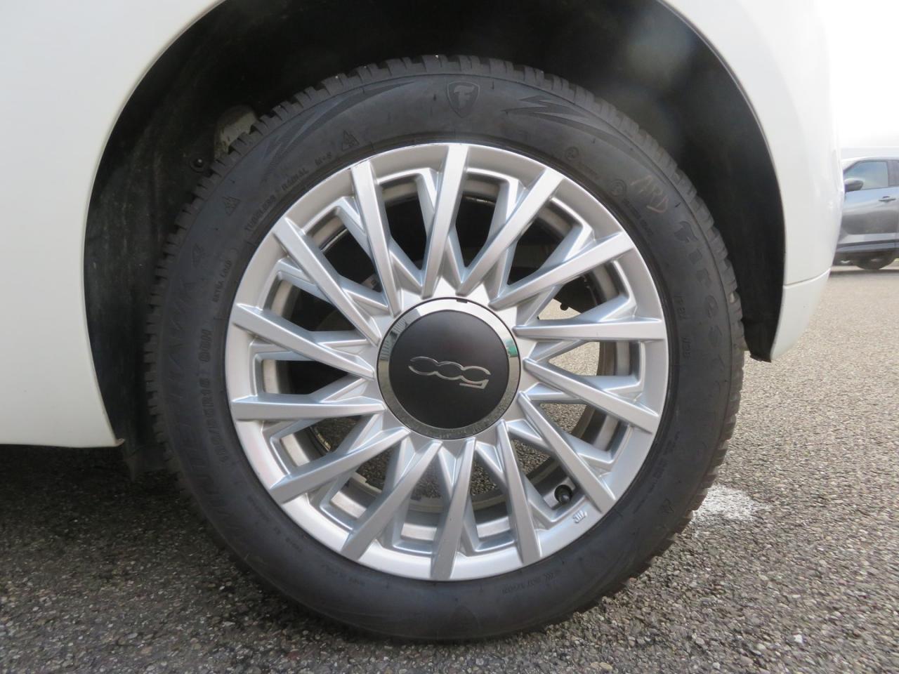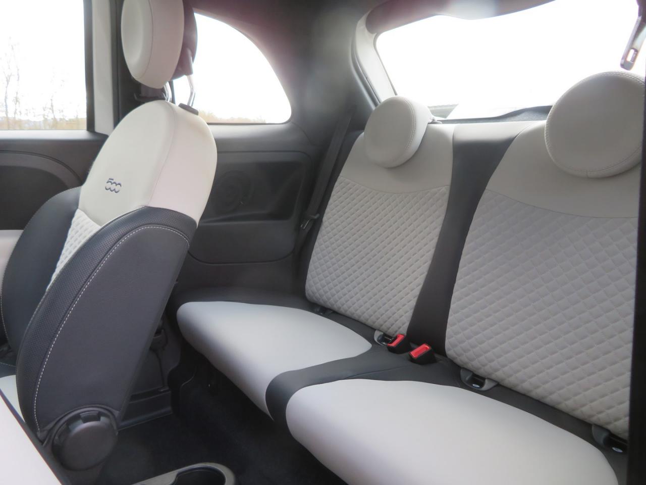 ABS – antiblocage des roues avec répartiteur de freinage EBDAir conditionnéAirbag Fiat de genouxAirbags fiat conducteur et passagerAirbags Fiat de toitAirbags Fiat latéraux avantAppuie-tête à l'avant, réglables en hauteurAssistance au freinage d'urgenceAttaches IsofixBanquette arrière rabattable avec appui-têteCalandre avec insert chroméCommandes de l'autoradio au volantCondamnation automatique des ouvrants en roulantCondamnation centralisée à distanceDirection assistée Dualdrive avec fonction"City"Eclairage du coffreESP - contrôle électronique de stabilité avec “Hill Holder"Feux de jour à LEDJantes alliage 15” New LoungeLame décorative arrière chroméeLimiteur de vitessePare-chocs couleur carrosseriePoignées de porte chroméesRégulateur de vitesseRétroviseurs extérieurs couleur carrosserieSellerie tissu matelassé blanc avec parties latérales noires. Logo 500 bordeauxSiège conducteur réglable en hauteurStart/Stop : Système d'extinction/allumage du moteur lors de courts arrêtsSystème Link : intégration Apple CarPlay et compatibilité Android AutoSystème Uconnect 7” HD (Dual Tuner / USB / Bluetooth)Toit vitré panoramique fixe avec pare-soleilVitres avant électriquesVolant réglable en hauteur