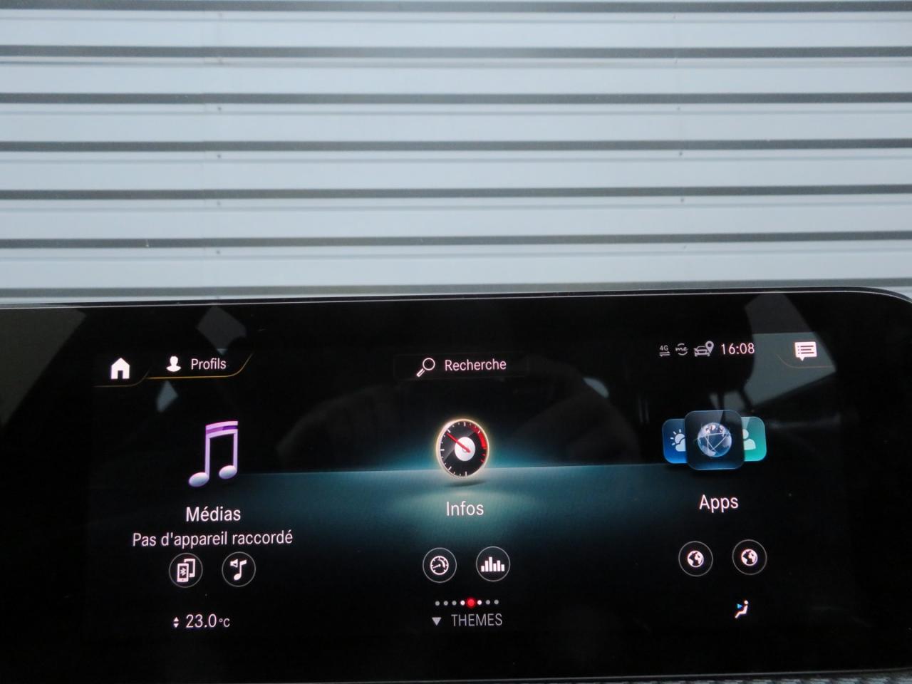 ABS (antiblocage de roues), ASR (antipatinage) et BAS (freinage d'urgence assisté)Accoudoir central avantADAPTIVE BRAKE avec fonction HOLD et aide au démarrage en côte, préremplissage et séchage des freins par freinage en cas de pluieAffichage du non bouclage des ceintures de sécurité aux places arrièreAirbag frontaux conducteur et passagerAirbag genoux conducteurAirbags latéraux (thorax / bassin) avantAirbags rideauxAttention Assist : système de détection de somnolenceAvertisseur d'angles mortsAvertisseur de franchissement de ligne actifBaguette de ligne de ceinture chroméeBaguettes de seuil avec monogramme "Mercedes-Benz"Bande colorée sur la planche de bord avec liseré dans le coloris contrastéBoîte à gants éclairéeBoîte de vitesses à double embrayage 8G-DCTBuses de ventilation noires avec cerclage chroméCalandre diamant avec pastilles noires et lamelle avec insert chroméCaméra de recul avec lignes de guidageCapot moteur actif pour la protection des piétonsCiel de pavillon en tissu noirClimatisation automatique THERMATIC à 1 zone avec filtre à charbons actifs contre la poussière, la suie et le pollenConnexion Bluetooth pour téléphone portableConsole centrale Noir brillantDésactivation automatique de l’airbag passager avantDirection paramétrique asservie à la vitesseDossier AR rabattable 40/20/40Double porte-gobelet dans la console centraleDYNAMIC SELECT avec les programmes de conduite « ECO », « Confort », « Sport » et « Individual »Essieu arrière à bras combinésFeux de stop adaptatifsFilets à bagages au dossier des sièges AVFrein de stationnement électriqueFreinage d'urgence assisté actifGarnitures intérieures en tissu /similicuir ARTICOI-Size et Top Tether pour les sièges arrière extérieursInserts décoratifs noirInterface USB-C dans le vide-poches et dans la console centrale arrièreJantes alliage 43,2 cm (17'') à 5 doubles branches finition noir brillant/argentKEYLESS-GO : système de démarrage sans cléKit anti-crevaison TIREFITModule de communication LTE pour l'utilisation des services Mercedes me connectPack AdvantagePack Confort SiègesPack Stationnement avec caméra de reculPack visibilitéPavé tactile TouchpadPeinture métalliséePré-équipement pour l'autopartage via l'application Mercedes me Car SharingPré-équipement pour Live Traffic Information (service gratuit pendant 3 ans après activation Mercedes me)Pré-équipement pour réglages et suivi du véhicule à distance (service gratuit pendant 3 ans après activation Mercedes me)Prise 12V dans le vide poche de la console centraleProjecteurs hautes performances à technologie LEDRainsensor (Capteur de pluie et de luminosité)Réception radio numérique (DAB)Reconnaissance des panneaux de limitation de vitesseSiège conducteur avec réglages de la hauteur et de l'approche du siège, de l'inclinaison du dossier, de l'inclinaison de l'assise, de la profondeur de l'assiseSièges AV confortsSystème d'Appel d'Urgence Mercedes-BenzSystème de commande vocale et assistant personnel activable grâce à "Hey Mercedes"Système de contrôle de la pression des pneusSystème de stabilisation en cas de vent latéralSystème multimédia MBUX avec fonctionnalités élargies (profils personnalisés, fonctions prédictives, borne Wifi, webradio)TEMPOMAT (régulateur et limiteur de vitesse)Train de roulement confort avec châssis surbaisséVolant sport multifonction en cuir avec boutons tactiles Touch-Control et surpiqûres noires