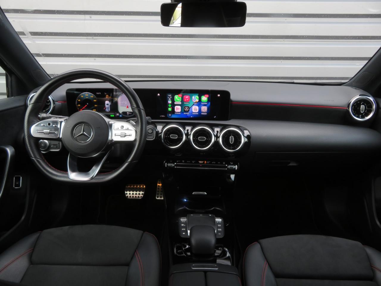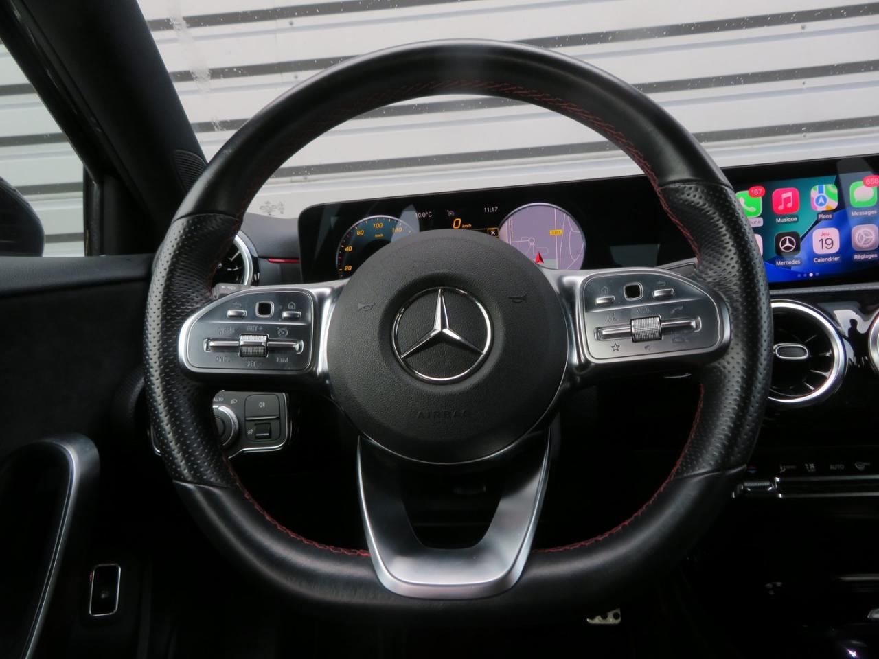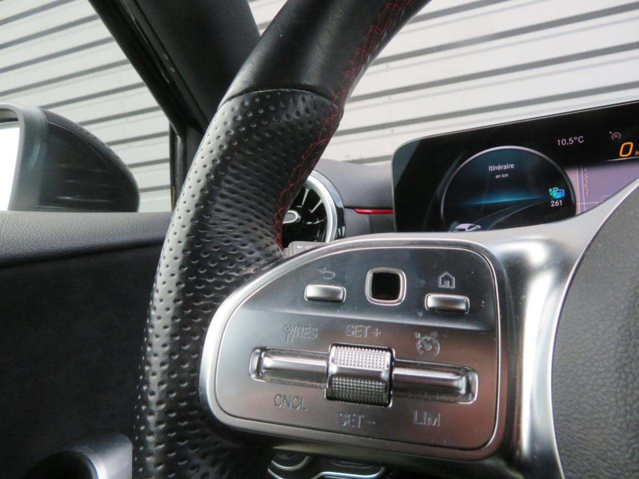 ABS (antiblocage de roues), ASR (antipatinage) et BAS (freinage d'urgence assisté)Accoudoir central avantADAPTIVE BRAKE avec fonction HOLD et aide au démarrage en côte, préremplissage et séchage des freins par freinage en cas de pluieAffichage du non bouclage des ceintures de sécurité aux places arrièreAirbag frontaux conducteur et passagerAirbag genoux conducteurAirbags latéraux (thorax / bassin) avantAirbags rideauxAttention Assist : système de détection de somnolenceAvertisseur de franchissement de ligne actifBaguettes de ligne de ceinture et entourages de vitres chromésBaguettes de seuil avec monogramme "Mercedes-Benz"Boîte à gants éclairéeBoîte de vitesses à double embrayage 8G-DCTBuses de ventilation noires avec cerclage chroméCâble de charge pour boîtier mural et bornes de recharge publiques, 5m, droit, 11kWCâble de charge pour prise secteur, 5m, droitCalandre diamant avec pastilles chromées et lamelle avec insert chroméCaméra de recul avec lignes de guidageCapot moteur actif pour la protection des piétonsChargeur embarqué 3,7kWCiel de pavillon en tissu noirClimatisation automatique THERMATIC à 1 zone avec filtre à charbons actifs contre la poussière, la suie et le pollenConnexion Bluetooth pour téléphone portableConsole centrale Noir brillantDésactivation automatique de l’airbag passager avantDirection paramétrique asservie à la vitesseDossier AR rabattable 40/20/40Double porte-gobelet dans la console centraleDYNAMIC SELECT avec les programmes de conduite « ECO », « Confort », « Sport » et « Individual »Etriers de freins avant avec monogramme Mercedes-Benz et disques perforésFeux de stop adaptatifsFilets à bagages au dossier des sièges AVFrein de stationnement électriqueFreinage d'urgence assisté actifGarnitures intérieures en microfibre DINAMICA/similicuir ARTICOI-Size et Top Tether pour les sièges arrière extérieursInserts décoratifs en microfibre DINAMICAInterface USB-C dans le vide-poches et dans la console centrale arrièreJantes alliage AMG 45,7 cm (18'') à 5 doubles branches gris titane et argentJupe arrière AMG avec insert décoratif chroméJupe avant AMG avec splitter en finition chromeKit anti-crevaison TIREFITKit carrosserie AMG composé de jupe avant, protections de bas de caisse et jupe arrièreModule de communication LTE pour l'utilisation des services Mercedes me connectPack AdvantagePack visibilitéPavé tactile TouchpadPédalier sport AMG en acier inoxydable brossé avec picots en caoutchoucPeinture noirePré-équipement pour l'autopartage via l'application Mercedes me Car SharingPré-équipement pour Live Traffic Information (service gratuit pendant 3 ans après activation Mercedes me)Pré-équipement pour réglages et suivi du véhicule à distance (service gratuit pendant 3 ans après activation Mercedes me)Pré-équipement pour services de charge et services à distance Plus (services de charge gratuit pendant 1 an, services à distance plus gratuit pendant 3 ans)Prise 12V dans le vide poche de la console centralePrise de rechargeProjecteurs hautes performances à technologie LEDRainsensor (Capteur de pluie et de luminosité)Réception radio numérique (DAB)Reconnaissance des panneaux de limitation de vitesseSiège conducteur avec réglages de la hauteur et de l'approche du siège, de l'inclinaison du dossier, de l'inclinaison de l'assise, de la profondeur de l'assiseSièges avant sport intégrauxSorties d'échappement apparentes en chrome (non fonctionnelles)Système d'Appel d'Urgence Mercedes-BenzSystème de commande vocale et assistant personnel activable grâce à "Hey Mercedes"Système de contrôle de la pression des pneusSystème de stabilisation en cas de vent latéralSystème multimédia MBUX avec fonctionnalités élargies (profils personnalisés, fonctions prédictives, borne Wifi, webradio)Tapis de sol AMGTEMPOMAT (régulateur et limiteur de vitesse)Volant sport multifonction à 3 branches en cuir Nappa, avec méplat, perforations au niveau de la zone de préhension, boutons tactiles Touch-Control, cache chromé et surpiqûres rouges