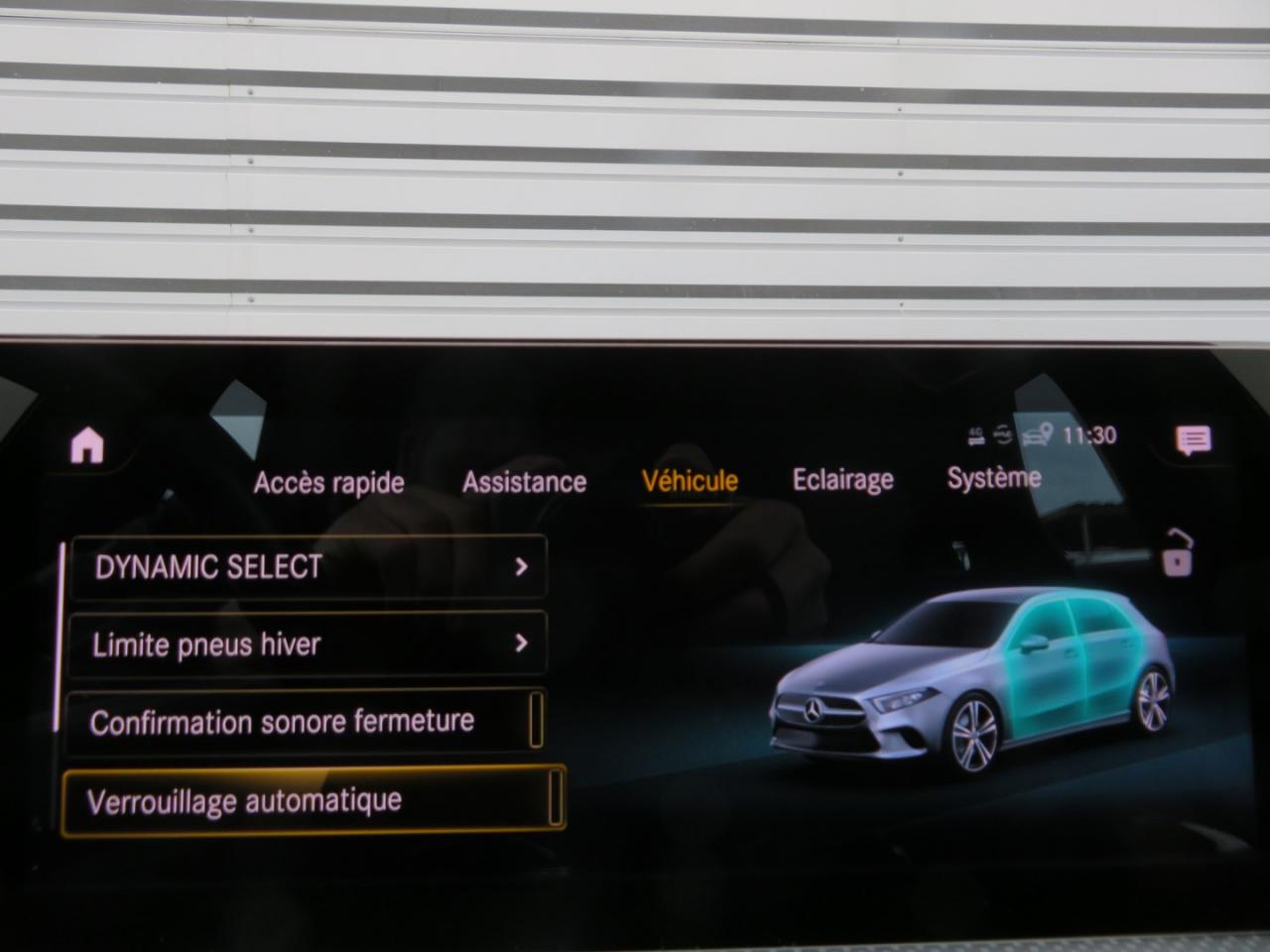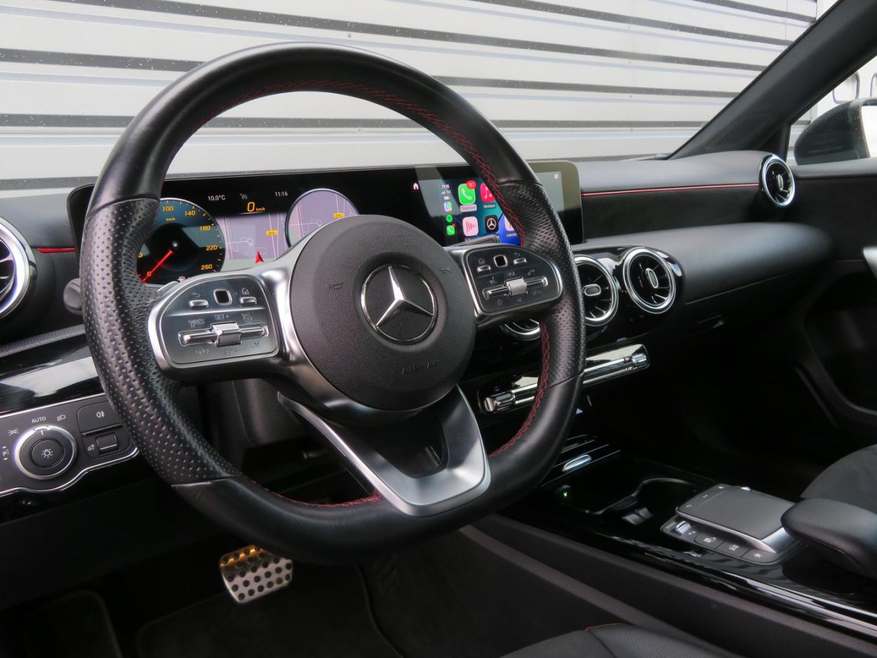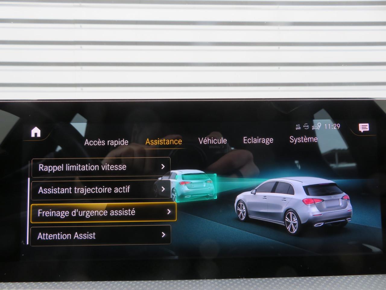 ABS (antiblocage de roues), ASR (antipatinage) et BAS (freinage d'urgence assisté)Accoudoir central avantADAPTIVE BRAKE avec fonction HOLD et aide au démarrage en côte, préremplissage et séchage des freins par freinage en cas de pluieAffichage du non bouclage des ceintures de sécurité aux places arrièreAirbag frontaux conducteur et passagerAirbag genoux conducteurAirbags latéraux (thorax / bassin) avantAirbags rideauxAttention Assist : système de détection de somnolenceAvertisseur de franchissement de ligne actifBaguettes de ligne de ceinture et entourages de vitres chromésBaguettes de seuil avec monogramme "Mercedes-Benz"Boîte à gants éclairéeBoîte de vitesses à double embrayage 8G-DCTBuses de ventilation noires avec cerclage chroméCâble de charge pour boîtier mural et bornes de recharge publiques, 5m, droit, 11kWCâble de charge pour prise secteur, 5m, droitCalandre diamant avec pastilles chromées et lamelle avec insert chroméCaméra de recul avec lignes de guidageCapot moteur actif pour la protection des piétonsChargeur embarqué 3,7kWCiel de pavillon en tissu noirClimatisation automatique THERMATIC à 1 zone avec filtre à charbons actifs contre la poussière, la suie et le pollenConnexion Bluetooth pour téléphone portableConsole centrale Noir brillantDésactivation automatique de l’airbag passager avantDirection paramétrique asservie à la vitesseDossier AR rabattable 40/20/40Double porte-gobelet dans la console centraleDYNAMIC SELECT avec les programmes de conduite « ECO », « Confort », « Sport » et « Individual »Etriers de freins avant avec monogramme Mercedes-Benz et disques perforésFeux de stop adaptatifsFilets à bagages au dossier des sièges AVFrein de stationnement électriqueFreinage d'urgence assisté actifGarnitures intérieures en microfibre DINAMICA/similicuir ARTICOI-Size et Top Tether pour les sièges arrière extérieursInserts décoratifs en microfibre DINAMICAInterface USB-C dans le vide-poches et dans la console centrale arrièreJantes alliage AMG 45,7 cm (18'') à 5 doubles branches gris titane et argentJupe arrière AMG avec insert décoratif chroméJupe avant AMG avec splitter en finition chromeKit anti-crevaison TIREFITKit carrosserie AMG composé de jupe avant, protections de bas de caisse et jupe arrièreModule de communication LTE pour l'utilisation des services Mercedes me connectPack AdvantagePack visibilitéPavé tactile TouchpadPédalier sport AMG en acier inoxydable brossé avec picots en caoutchoucPeinture noirePré-équipement pour l'autopartage via l'application Mercedes me Car SharingPré-équipement pour Live Traffic Information (service gratuit pendant 3 ans après activation Mercedes me)Pré-équipement pour réglages et suivi du véhicule à distance (service gratuit pendant 3 ans après activation Mercedes me)Pré-équipement pour services de charge et services à distance Plus (services de charge gratuit pendant 1 an, services à distance plus gratuit pendant 3 ans)Prise 12V dans le vide poche de la console centralePrise de rechargeProjecteurs hautes performances à technologie LEDRainsensor (Capteur de pluie et de luminosité)Réception radio numérique (DAB)Reconnaissance des panneaux de limitation de vitesseSiège conducteur avec réglages de la hauteur et de l'approche du siège, de l'inclinaison du dossier, de l'inclinaison de l'assise, de la profondeur de l'assiseSièges avant sport intégrauxSorties d'échappement apparentes en chrome (non fonctionnelles)Système d'Appel d'Urgence Mercedes-BenzSystème de commande vocale et assistant personnel activable grâce à "Hey Mercedes"Système de contrôle de la pression des pneusSystème de stabilisation en cas de vent latéralSystème multimédia MBUX avec fonctionnalités élargies (profils personnalisés, fonctions prédictives, borne Wifi, webradio)Tapis de sol AMGTEMPOMAT (régulateur et limiteur de vitesse)Volant sport multifonction à 3 branches en cuir Nappa, avec méplat, perforations au niveau de la zone de préhension, boutons tactiles Touch-Control, cache chromé et surpiqûres rouges