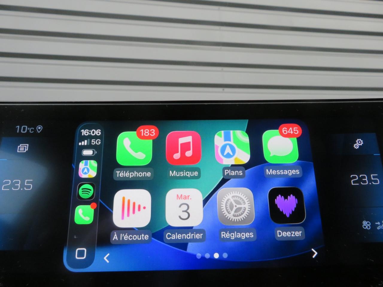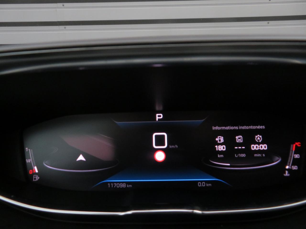 ABS avec répartiteur électronique de freinage (REF) et aide au freinage d'urgence (AFU)Accès et démarrage mains-libresAccoudoir central avant à ouverture papillon, avec compartiment de rangement éclairé et réfrigérableAide graphique et sonore au stationnement arrièreAir conditionné automatique bi-zone avec aérateurs aux places arrièreAirbags frontaux conducteur et passager adaptatifs (airbag passager déconnectable)Airbags latéraux conducteur et passager avantAirbags rideaux de tête aux places avant et arrièreAppuis-tête à sécurité optimisée réglables en hauteur sur les sièges conducteur et passager avant ainsi que sur les places latérales arrièresAvertisseur de temps de conduiteBandeau de pare-choc arrière chroméBanquette rabattable 1/3 - 2/3 (modularité 'Magic Flat' et commandes dans le coffre) avec accoudoir et trappe à skisBarres de toit longitudinales profilées en aluminiumBoîte à gants floquée et éclairéeCalandre à damier chroméCeintures de sécurité arrière trois points à enrouleur (x3), avec prétensionneurs et limiteurs d'effort aux places latéralesCeintures de sécurité avant trois points à enrouleur, réglables en hauteur avec prétensionneurs et limiteurs d'effortCommande de verrouillage à distance (deux plips)Contrôle dynamique de stabilité CDS avec antipatinage électronique ASRDécors de planche de bord et panneaux de portes en maille 'Brumeo'Décors intérieurs (baguettes de planche de bord et panneaux de portes, enjoliveur de console) chromésDétection de sous-gonflage indirecteDirection assistée électrique, avec colonne de direction réglable en hauteur et profondeur (mécanique)Drive Mode : Choix de 2 modes de conduite (Eco ou Sport)Eclairage intérieur à LED : plafonniersEnjoliveurs d'arc de pavillon en inoxEnjoliveurs en inox sur les protecteurs de bas de portesEssuie-glace arrière avec déclenchement automatique en marche arrièreEssuie-vitre avant avec système de lavage 'Magic Wash'Fixations pour trois sièges enfants suivant norme ISOFIX aux places passager avant et latérales arrièreFonction 'Mirror Screen' (Apple Carplay / Android Auto)Frein de stationnement électrique avec aide au démarrage en penteIndicateur de rapport conseilléInserts d'ailes avant chromésJantes alliage 18" 'Detroit' bi-ton diamantées Gris StormKit de dépannage pneumatiqueLève-vitres électriques avant et arrière, séquentiels et antipincementLunette arrière chauffante avec antennes sérigraphiéesMiroirs de courtoisie éclairésNavigation 3D connectée avec reconnaissance vocale, écran tactile capacitif 10" HDPack City 1Pack Eclairage d'ambiancePack Safety PlusPack VisibilitéPassages de roues rapportés noirsPEUGEOT Connect SOS & Assistance et TéléservicesPeugeot i-Cockpit : combiné tête haute numérique haute qualité d'affichage, écran tactile capacitif 10" HD et volant compact multi-fonctionsPlafonnier avec spots de lecture avant (x2) et arrière (x2)Plancher de coffre deux positionsPoches aumônières au dos des sièges avantPrise USB (dans la zone connectique)Prises 12V (x3 : zone connectique, arrière de console et coffre)Projecteurs 'Peugeot LED Technology' avec feux diurnes à LED sous projecteursRadio avec fonction DAB (Radio Numérique Terrestre), bi-tuner compatible MP3 et connectivité Bluetooth (audio streaming, kit mains libres), avec commandes au volant, 6 HP, écran tactile capacitif 10" HDReconnaissance étendue des panneaux de signalisation et préconisation de vitesseRégulateur et limiteur de vitesseRétroviseurs extérieurs couleur carrosserieRétroviseurs extérieurs électriques et dégivrants, rabattables électriquement avec éclairage d'accueil à LEDSabot de pare-choc avant gris métalliséSécurité enfant électrique des vitres arrièreSellerie TEP & Tissu 'Colyn'Siège conducteur avec réglage lombaireSiège conducteur et passager réglables en hauteurSiège passager avant avec mise en tabletteToggle Switches' chromés (touches 'piano' d'activation des fonctions de l'écran tactile)Verrouillage automatique de tous les ouvrants en roulantVitres latérales et lunette arrière surteintéesVolant cuir fleur