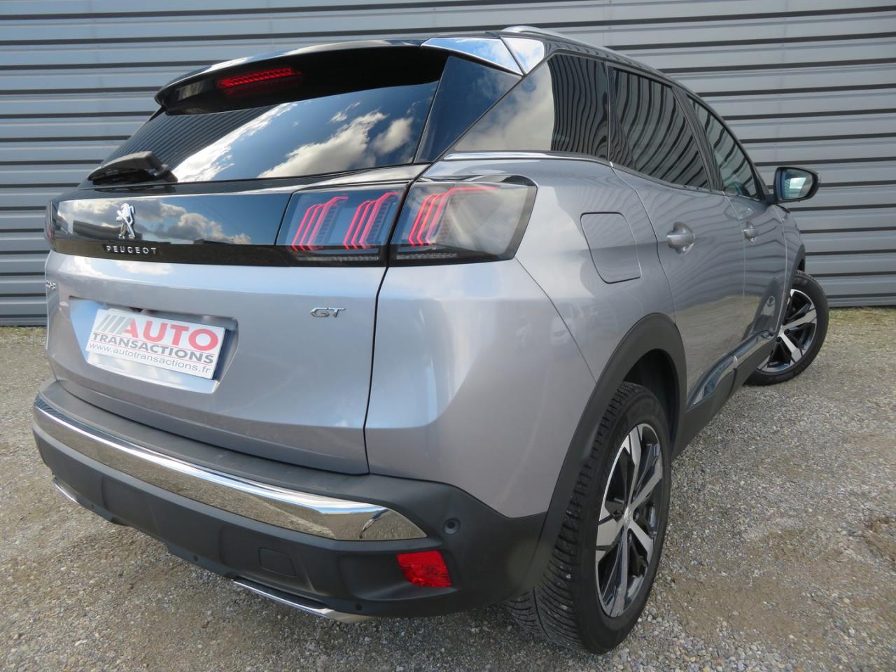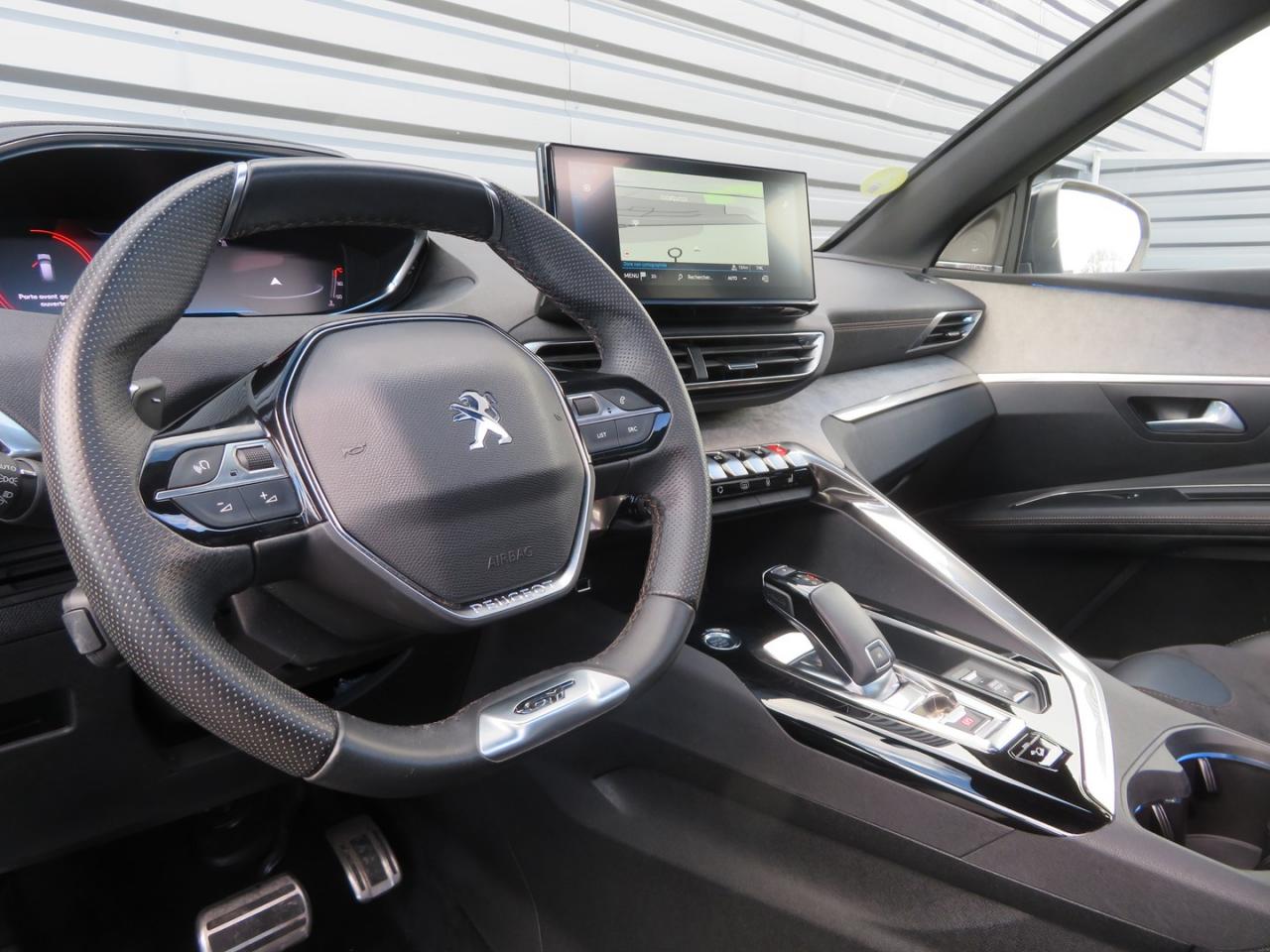 ABS avec répartiteur électronique de freinage (REF) et aide au freinage d'urgence (AFU)Accès et démarrage mains-libresAccoudoir central avant à ouverture papillon, avec compartiment de rangement éclairé et réfrigérableAide graphique et sonore au stationnement arrièreAide graphique et sonore au stationnement avantAir conditionné automatique bi-zone avec aérateurs aux places arrièreAirbags frontaux conducteur et passager adaptatifs (airbag passager déconnectable)Airbags latéraux conducteur et passager avantAirbags rideaux de tête aux places avant et arrièreAppuis-tête à sécurité optimisée réglables en hauteur sur les sièges conducteur et passager avant ainsi que sur les places latérales arrièresAvertisseur de temps de conduiteBandeau de pare-choc arrière chroméBanquette rabattable 1/3 - 2/3 (modularité 'Magic Flat' et commandes dans le coffre) avec accoudoir et trappe à skisBarres de toit longitudinales profilées en aluminiumBoîte à gants floquée et éclairéeCalandre GT avec design évolutif chroméCanules d'échappement de style chroméesCeintures de sécurité arrière trois points à enrouleur (x3), avec prétensionneurs et limiteurs d'effort aux places latéralesCeintures de sécurité avant trois points à enrouleur, réglables en hauteur avec prétensionneurs et limiteurs d'effortCommande de verrouillage à distance (deux plips)Commandes de lève-vitres avec inserts chromésContrôle dynamique de stabilité CDS avec antipatinage électronique ASRCoques de rétroviseurs extérieurs Noir Perla NeraDécors de planche de bord et panneaux de portes en Alcantara Gris GrevalDécors intérieurs (baguettes de planche de bord et panneaux de portes, enjoliveur de console) chromésDétection de sous-gonflage indirecteDirection assistée électrique, avec colonne de direction réglable en hauteur et profondeur (mécanique)Drive Mode : Choix de 2 modes de conduite (Eco ou Sport)Driver Sport PackEclairage intérieur à LED : plafonniers et rangementsEcrous antivolEnjoliveurs d'arc de pavillon en inoxEnjoliveurs en inox sur les protecteurs de bas de portesEssuie-glace arrière avec déclenchement automatique en marche arrièreEssuie-vitre avant avec système de lavage 'Magic Wash'Fixations pour trois sièges enfants suivant norme ISOFIX aux places passager avant et latérales arrièreFonction 'Mirror Screen' (Apple Carplay / Android Auto)Frein de stationnement électrique avec aide au démarrage en penteHabitacle et ciel de pavillon Noir MistralHayon mains libres : volet de coffre motorisé avec accès mains libresIndicateur de rapport conseilléInserts d'ailes avant chromésJantes alliage 19" 'San Francisco' bi-ton diamantées Noir Onyx matJoncs de vitres latérales en inoxKit de dépannage pneumatiqueLève-vitres électriques avant et arrière, séquentiels et antipincementLimiteur de vitesseLunette arrière chauffante avec antennes sérigraphiéesMiroirs de courtoisie éclairésNavigation 3D connectée avec reconnaissance vocale, écran tactile capacitif 10" HDPack City 2Pack Drive Assist PlusPack Eclairage d'ambiancePack Safety PlusPack VisibilitéPassages de roues rapportés noirsPédalier et repose-pied conducteur en aluminiumPEUGEOT Connect SOS & Assistance et TéléservicesPeugeot i-Cockpit : combiné tête haute numérique haute qualité d'affichage, écran tactile capacitif 10" HD et volant compact multi-fonctionsPlafonnier avec spots de lecture avant (x2) et arrière (x2)Planche de bord surpiquéePlancher de coffre deux positionsPoches aumônières au dos des sièges avantPrise USB (dans la zone connectique)Prises 12V (x3 : zone connectique, arrière de console et coffre)Prises USB de charge (x2) au 2nd rangProjecteurs 'Peugeot Full LED Technology' avec correction automatique de site, fonction Eclairage Virage Statique,'Foggy Mode' et feux diurnes à LED prolongés dans les projecteursRadio avec fonction DAB (Radio Numérique Terrestre), bi-tuner compatible MP3 et connectivité Bluetooth (audio streaming, kit mains libres), avec commandes au volant, 6 HP, écran tactile capacitif 10" HDReconnaissance étendue des panneaux de signalisation et préconisation de vitesseRétroviseur intérieur à position nuit automatique, sans encadrementRétroviseurs extérieurs électriques et dégivrants, rabattables électriquement avec éclairage d'accueil à LEDSabot de pare-choc avant gris métalliséSécurité enfant électrique des vitres arrièreSellerie Mi-TEP/AlcantaraSeuils de portes avant en inoxSiège passager avant avec mise en tabletteSièges avant chauffantsSurtapis aux places avant et arrièreSystème Hi-Fi Premium Focal - 10 haut-parleursToggle Switches' chromés (touches 'piano' d'activation des fonctions de l'écran tactile)Toit 'Black Diamond' (toit Noir Perla Nera)Verrouillage automatique de tous les ouvrants en roulantVitres latérales et lunette arrière surteintéesVolant cuir fleur perforé avec bagues chrome acier et badge GT