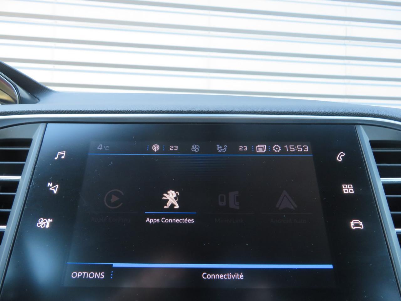 ABS (Antiblocage de roues)Accès et démarrage mains libres - inclut la prise USB en rang 2 et un plip supplémentaireAccoudoir central avant avec rangementAide graphique et sonore au stationnement arrièreAide graphique et sonore au stationnement avantAir conditionné automatique bi-zone (avec filtre à charbon actif, anti-odeurs)Airbags frontaux conducteur et passager adaptatifs (passager neutralisable), latéraux avant et rideaux avant et arrièreAlerte visuelle et sonore de débouclage des ceintures de sécurité arrièreAlerte visuelle et sonore de non bouclage et de débouclage des ceintures de sécurité conducteur et passager avantAllumage automatique des feux de détresseAppuis-tête à sécurité optimisée réglables en hauteur sur les sièges conducteur et passager avant ainsi que sur les places arrièresAssistance au démarrage en côte (Hill Assist)Assistance au freinage d'urgenceAvertisseur de temps de conduiteBanquette arrière rabattable 1/3 - 2/3 avec dossier rabattable, assise fixeBecquet arrière couleur carrosserieBoîte à gants éclairée et réfrigérableCalandre avec jonc périphérique et ailettes chromés, intégrant le lion PEUGEOTCeinture conducteur et passager à enrouleur pyrotechniqueCeintures centrale rang 2 sans limitation d'effort, 3 pointsCeintures latérales rang 2 avec limitation d'effortCombiné tête haute, avec graduations spécifiques, aiguilles avec du chrome et cerclages chromés, matrice couleur 3"5Commande de verrouillage à distance (deux plips)Détection de sous-gonflage indirecteEcran tactile 9,7'' (Radio 6HP, et connectivité Bluetooth (audio streaming, kit mains libres), commandes au volantEntourage de vitres chroméESP (contrôle dynamique de stabilité) + ASREssuie-glace arrière avec déclenchement automatique en marche arrièreFeux arrière à LED avec masque noirFeux diurnes à LEDFixations Isofix (aux places latérales arrière)Fonction 'Mirror Screen' (Apple CarPlay/ Android Auto/ MirrorLink)Frein de parking électriqueJantes alliage 16'' diamantées 'Jade'Kit de dépannage pneumatique (anneau de remorquage, compresseur et flacon de produit de colmatage)Lève-vitres électriques arrière à fonctions séquentielle et anti-pincementLève-vitres électriques avant à commande séquentielle et anti-pincementLunette arrière chauffanteMiroirs de courtoisie éclairés conducteur et passagerPack ConfortPack Look extérieurPack SafetyPack VisibiltéPeinture opaque Gris HurricanePEUGEOT Connect : Navigation connectée 3D avec reconnaissance vocale - Cartographie Europe avec connexion automatique et permanente aux services de Navigation connectée, SOS et Assistance, TéléservicesPEUGEOT i-Cockpit : Poste de pilotage innovant associant combiné tête haute, volant compact et grand écran tactilePlafonnier central avant et arrière à LEDPoches aumônières au dos des sièges avantPommeau de levier de vitesses et frein à main en cuirPrise 12VPrise USBProjecteurs antibrouillard halogènesProjecteurs elliptiques halogènes avec feux diurne intégréRangement dans le coffre, spécifique pour triangle de pré-signalisation et trousse de secoursRéglage manuel lombaire du siège conducteurRégulateur et limiteur de vitesseRépartiteur électronique de freinage REFRétroviseurs extérieurs avec réglage électriqueRétroviseurs extérieurs dégivrantsRétroviseurs extérieurs rabattables électriquement avec éclairage d'accueilSécurité enfant électrique des vitres arrièreSellerie dynamique TEP & Tissu 'Oxford' Mistral ou GuérandeSiège conducteur et passager réglable en hauteur (mécanique)Verrouillage automatique de tous les ouvrants en roulantVisiopark 1 : caméra de recul avec restitution sur l'écran tactile d'une vue arrière, et d'une vue de dessus de l'environnement arrière du véhiculeVitres latérales et lunette arrière surteintéesVolant réglable en hauteur et en profondeur (mécanique)Volant sport cuir pleine fleur avec commandes intégrées