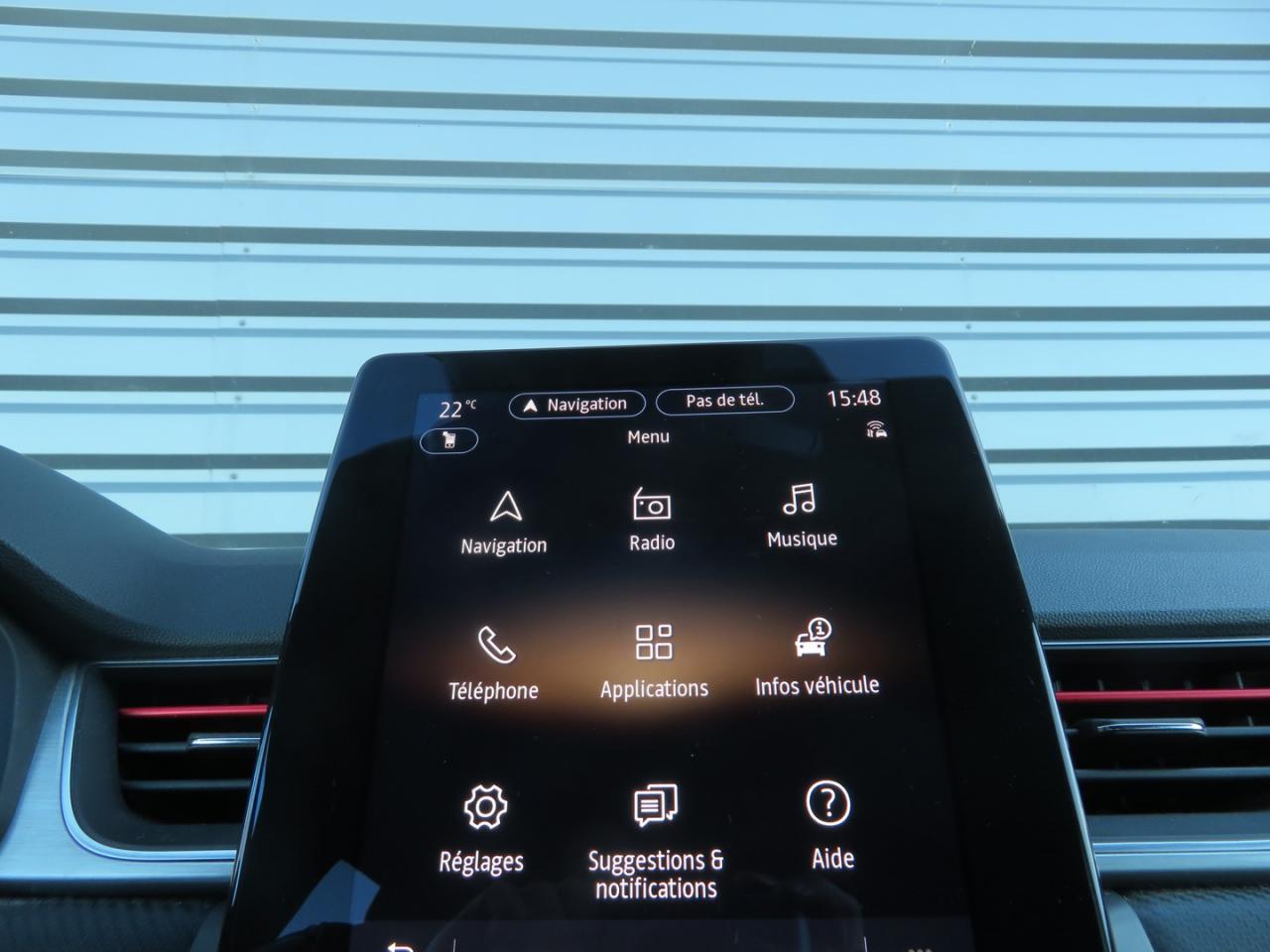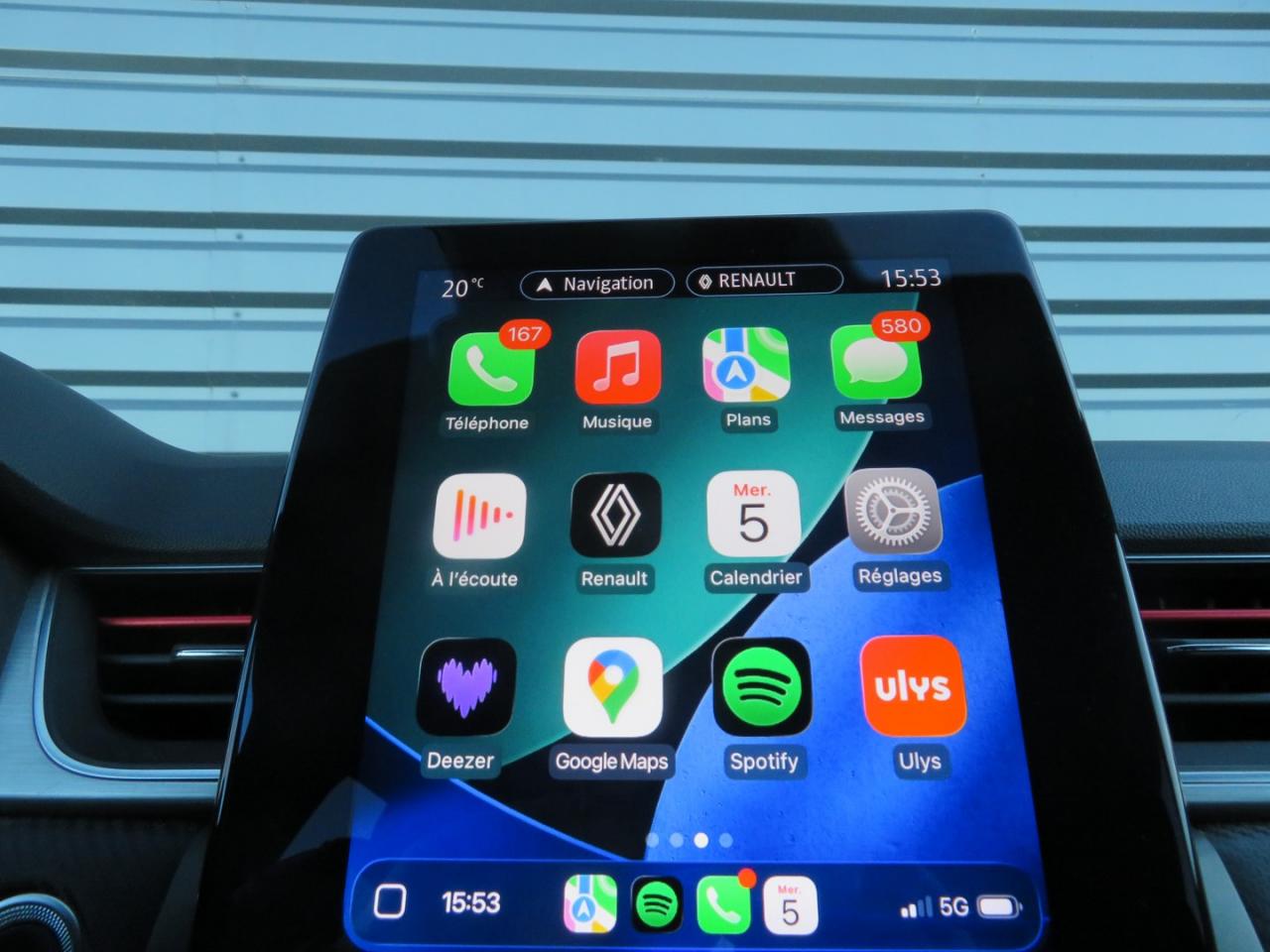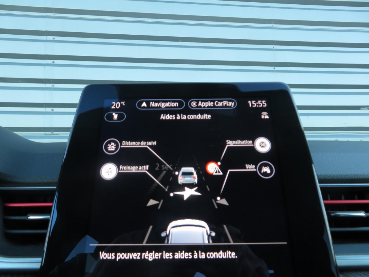 2 prises USB avantABS avec aide au freinage d'urgenceAccoudoir / console centrale avec rangementAccoudoirs de porte gainés en matériau moussé noir pailletéAide au démarrage en côteAide au stationnement avant et arrière + caméra de reculAirbags frontaux et latéraux (tête thorax),conducteur et passagerAlerte de sortie de voie avec volant haptiqueAlerte de survitesse avec reconnaissance des panneaux de signalisationAlerte distance de sécuritéAlerte oubli des ceintures de sécurité aux 5 places avec détection des occupantsAllumage automatique des essuie-glacesAllumage automatique des projecteursAnimation de planche de bord façon "carbone" en matériau softAntenne de toit « aileron de requin »Assistance au maintien de voieBadge R.S. Line sur porte de coffreBandeau supérieur de décor façon aluminium brosséBanquette arrière coulissante, rabattable 1/3-2/3 avec 3 appuis-têtes réglables en hauteurBouclier avant spécifique R.S. Line avec lame F1 couleur Gris et grille en nid d’abeilleBouton d’appel d’urgence r-callBouton de démarrage Start/Stop avec contour chroméCapteur de pluieCarte mains-libresCeinture centrale arrière 3 points, avec prétensionneur et limiteur d’effortCeintures de sécurité avec liseré rougeCeintures de sécurité avec prétentionneurs et limiteurs d’effort aux places avant et latérales arrièreCeintures de sécurité conducteur et passager avant réglables en hauteurChargeur de smartphone par inductionCiel de pavillon tissé gris clairClimatisation automatiqueCoiffe supérieure de planche de bord mousséeCondamnation électrique centralisée des portes avec télécommande et condamnation des portes en roulantConsole centrale flottante, avec levier de vitesse e-shifterDécors intérieurs chromés (cerclage aérateurs, inserts volant et entourage de levier de vitesse)Désactivation manuelle de l'airbag passagerDiffuseur d’air arrière peint en GrisDouble canules d'échappement chroméesEclairage avant et arrière Full LED Pure Vision avec signature lumineuse en forme de « C »Eclairage intelligent (commutation automatique feux de croisement/feux de route)Entourage de levier de vitesse en chrome satinéESC (contrôle électronique de la trajectoire)Feux de stop à LEDFixations de siège enfant i-Size à l'arrièreFixations i-Size pour le siège passager avantFrein de parking électrique avec fonction Auto-HoldFreinage actif d’urgence, avec détection des voitures, motos, piétons, cyclistes (jour et nuit)Indicateur de changement de vitessesInsert chromé sur les protections inférieures de portesInserts d'ailes avant chromésJantes alliage 18” Le CastelletJonc de calandre noir brillant avec inserts chromésJoncs de pare-chocs arrière ChromésKit gonflage de réparationLécheurs de vitres noirsLève-vitre électriques à impulsionLigne horizontale de couleur rouge sur l'aérateur de planche de bordMode EcoMontants avant, milieu et arrière noirs brillantsPanneaux de porte avant avec bandeau supérieur et médaillon en matériau mousséPanneaux de portes avant et arrière avec inserts soft noirs trame Carbone et accoudoirs de couleur noirePédalier en aluminiumPeinture bi-ton (toit, coques de rétroviseurs, montants de pare-brise)Plafonnier éclairage LEDPlanche de bord, harmonie noirePlancher de coffre modulable 2 positionsPoches aumônière au dos des sièges avantPoignées de portes couleur carrosseriePoignées de portes intérieures finition chrome satinéPommeau de levier de vitesse en cuir avec surpiqûres grises et rougesPommeau de levier de vitesses en cuirProtection de portes couleur Gris et noirRégulateur et limiteur de vitesseRenault MULTI-SENSE, personnalisation des 3 modes de conduites (MY SENSE, ECO, SPORT) et des 8 ambiances lumineuses intérieuresRéplication smartphone compatible Android Auto & Apple CarPlayRétroviseur intérieur électrochrome sans contourRétroviseurs extérieurs électriques et dégivrantsRétroviseurs extérieurs réglables, rabattables électriquement et dégivrantsRétroviseurs peints noirsSellerie spécifique R.S LineSeuil de porte aluminium avec marquage renault sportSiège conducteur réglable en hauteurSiège passager réglable en hauteurSièges sport avec maintien latéral renforcé, étiquette logo R.SSignature chromée R.S Line sur les ailes avantSkis avant et arrière GrisSystème de détection de la pression des pneusSystème de fixation ISOFIX aux places latérales arrière et passager avantSystème Multimédia EASY LINK avec écran tactile 9,3”Tableau de bord avec écran numérique couleur 7”Vitres latérales et lunette arrière surteintéesVolant cuir, avec cuir perforé, signature R.S, surpiqûres rouges et grisesVolant réglable en hauteur et en profondeurVolant sport en cuir performé avec logo Renault Sport