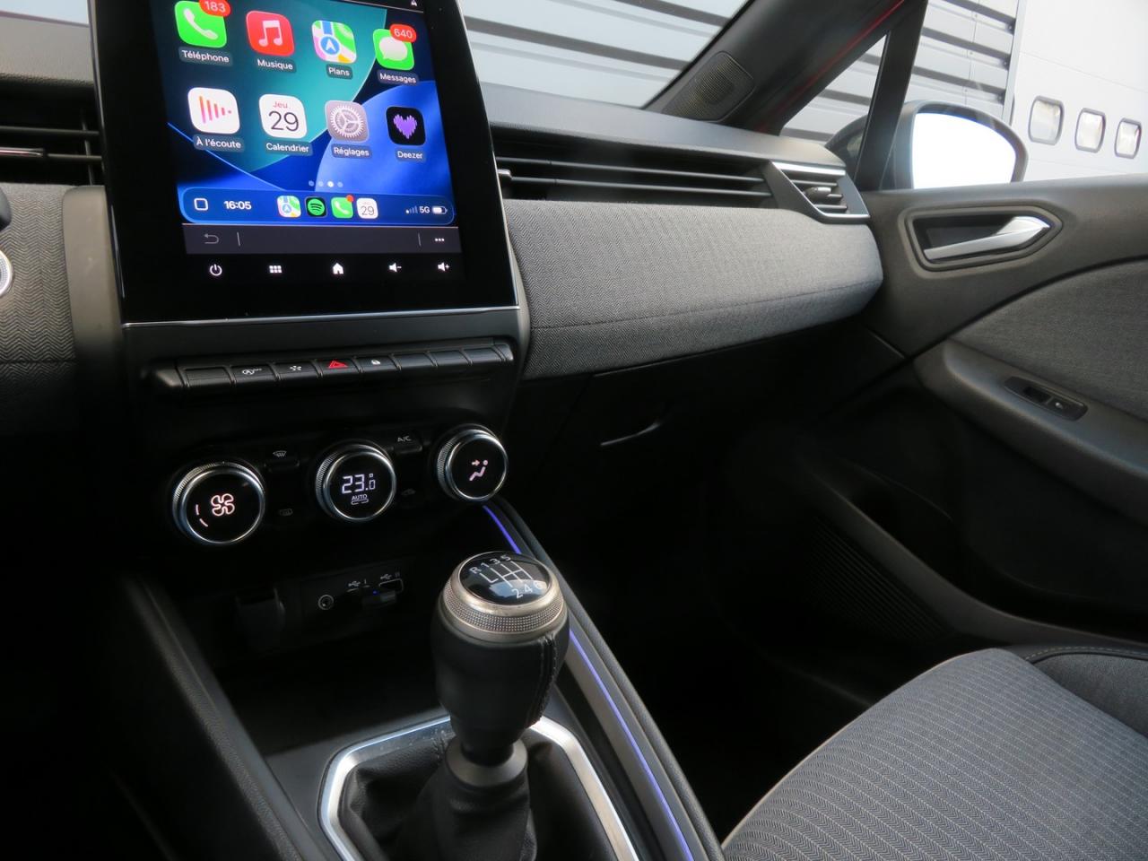 6 haut-parleursABS avec aide au freinage d'urgenceAccoudoir avant, coulissant - avec rangement fermé de 2,2 lAérateurs latéraux chrome satinéAide au démarrage en côteAide au stationnement arrièreAirbags frontaux et latéraux à l'AVAirbags rideaux de têtes aux places avant et arrièreAlerte attention conducteurAlerte de franchissement de ligneAlerte distance de sécuritéAlerte oubli des ceintures de sécurité aux 5 places avec détection des occupantsAllumage automatique des essuie-glacesAllumage automatique des projecteursAntenne de type requin couleur noir brillantAppel d'Urgence RenaultAppuie-tête AV anti "coup du lapin"Appuis-têtes avant fin et 3 appuis-têtes arrière réglables en hauteurAssistance au maintien de voieBadges chromés sur les ailes avant et la porte de coffreBanquette arrière rabattable 40/60Bluetooth, 2 USB, 1 AUXBoîte à gants fermée, éclairage et refroidissement, avec abattant à ouverture douce (8,4 l)Bouclier avant sport lame F1 ton caisseCaméra de reculCanule d'échappement chroméeCarte Renault avec accès et démarrage mains-libres avec fermeture à l’éloignementCeinture centrale arrière 3 points, avec prétensionneurCeintures de sécurité AV et latérales AR à prétensionneurs et limiteurs d'effortCeintures de sécurité avant réglables en hauteurClimatisation automatiqueCoiffe de planche de bord en noir, avec matériau mousséCompteur numérique couleur 7” personnalisableConsole centrale avant flottante, avec gainage en matériau softContrôle électronique de stabilité (ESC)Désactivation manuelle de l'airbag passagerDiffuseur arrière Noir BrillantDirection assistée électrique variableEasy Link 7" Système multimédia connecté avec écran 7" avec NavigationEclairage intérieur avant et arrière avec 4 liseuses LEDEntourage de vitres latérales noir brillantEntourage levier de vitesses chromésFeux arrière à LED avec signature lumineuse en forme de C avec effet profondeurFeux de jour à LED intégrés aux projecteursFixation ISOFIX sur siège passager avantFixations Isofix aux places latérales arrièreFrein de parking assistéFreinage actif d’urgence, avec détection des voitures, motos, piétons, cyclistes (jour et nuit)Grille inférieure de calandre en nid-d’abeillesInserts décoratifs sur le volant à effet "chromé-satiné"Jantes alliage diamantées 16” boa vistaJoncs chromés sur bandeau supérieur de calandreJupe de bouclier arrière noir brillantKit de gonflage de pneumatiquesLecture des panneaux de signalisationLève-vitres arrière électriques impulsionnelsLimiteur de vitesseLogo Renault chromé, avec bandeau supérieur de calandre Noir BrillantLogo sur le volantMode ECO avec bouton d'activationPack Ambiance LuteciaPlancher de coffre mobilePoignées arrière intégrées noir brillantPoignées de porte avant couleur carrosseriePommeau de levier de vitesse revêtu textile enduit grainé noirPrévention survitesseProjecteurs avant 100% à LED Performance éclairage Renault LED pure vision avec faisceau allongé et élargiProtections inférieures de porte chroméesRéception radio numérique (DAB+ et traditionnels FM/AM)Régulateur de vitesseRenault MULTI-SENSE, personnalisation des modes de conduites et ambiance intérieures (3 mode pré-définis: MY SENSE, ECO, SPORT)Rétroviseur intérieur électrochromeRétroviseurs extérieur rabattables automatiquementRétroviseurs extérieurs couleur noirRétroviseurs extérieurs électriques et dégivrantsSellerie lutecia 60% biosourcée, mixte noir/gris et tissu anthracite à fines rayures, jonc grisService Auto-Update - 3 ans inclusServices de navigation connectée - 3 ans inclusSiège conducteur avec réglage en hauteurSièges avant lutecia, assise élargie et maintien latéral amélioréSystème d'appel en cas de panne : B-CallSystème de surveillance de pression des pneusVéhicule connecté 4G avec pack de données inclus pendant 3 ansVitres avant électriques avec descente et remontée à impulsionVitres latérales et lunette arrière surteintéesVolant en textile enduit grainé cousuVolant multifonctionVolant réglable en hauteur et en profondeur