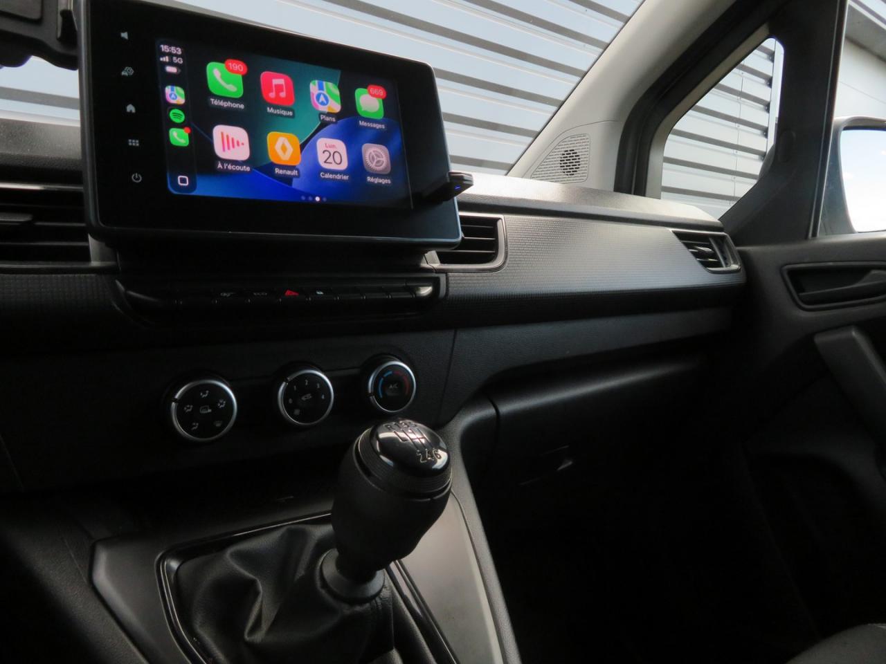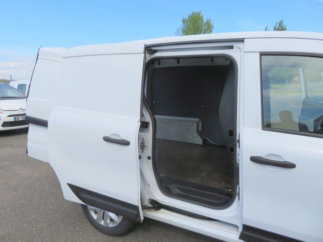 2 USB et 1 prise 12 V dans rangement au dessus du volant6 anneaux d’arrimage rotatifs au solHabillage intérieur completAide au démarrage en côteAide au stationnement arrièreAirbag frontal conducteurAirbags rideauxBoucliers avant/arrière noir grainéCapucineCharge utile jusqu’à 600 kgClé rétractable 3 boutonsClimatisation manuelleCondamnation automatique des ouvrants en roulantContrôle de stabilité de l'attelageContrôle dynamique de trajectoire (ESP)EASY LINK avec écran 8" : système multimédia compatible Android Auto et Apple CarPlay - BluetoothEnjoliveurs médium 15” CartenEssuie-glaces avant automatique avec détecteur de pluie et allumage automatique des feuxFermeture centralisée à distanceFeux de jour LED C-ShapeFonction appel d'urgenceHabillage latéral plastique mi-hauteur en isorelHarmonie planche de bord noir titaneLève-vitres avant électriques, impulsionnel côté conducteurModule central de rangement avec accoudoir textile entre les sièges avantPanneau latéral gauche tôléPoignées de portes extérieures noir grainéPorte latérale droite coulissante tôléePortes arrière tôlées ouvrant à 180°Prise 12 V dans l'espace de chargementPrise USB en façadeProjecteurs halogènes avec signature LEDProtections latérales Noir grainéRégulateur et limiteur de vitesseRétroviseurs extérieurs électriques et dégivrantsRétroviseurs extérieurs noir grainéRoue de secoursSellerie tissu INTISiège conducteur réglage lombaireSiège passager rabattable et repliable formant plancher platSmartphone RéplicationTiroir Easy Life coulissantVitres teintéesVoyant d‘alerte et alarme sonore de bouclage de ceinture conducteur