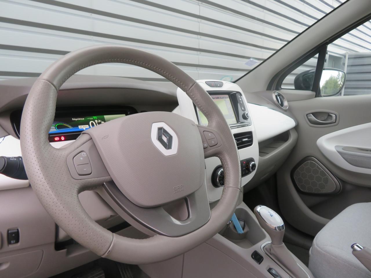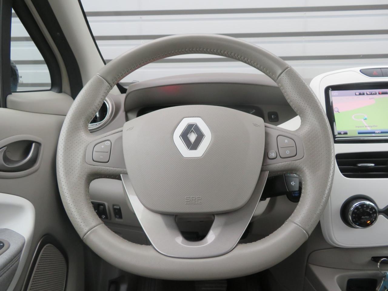 2 appuie-têtes arrière latéraux réglables en hauteurABS avec aide au freinage d'urgenceAide au démarrage en côteAirbags frontaux et latéraux conducteur et passager déconnectablesAirbags latéraux avant tête/thoraxAllumage automatique des feux de détresseBatterie Z.E. 40 pour une autonomie de 400 km NEDC / 300 km réelleBoîte à gants (7 l)Câble de recharge (6,5m) pour Wall-box et borne publique avec sac Z.E.Câble de recharge Flexi Charger (6,5 m) pour prise Green Up Access et prises domestiquesCarte Renault à télécommandeCeintures de sécurité 3 points avec prétensionneurs adaptatifs à l'avantCeintures de sécurité réglables en hauteurCondamnation automatique des ouvrants en roulantConsole centrale avant avec rangementsContrôle dynamique de conduite ESC avec fonction antipatinage ASR et contrôle de sous-virage CSVDesign intérieur 'Harmonie Gris Tropique'Economètre, jauge batterie et compteur kilométrique intégrés au tableau de bordEcran couleur TFT avec ordinateur de bord et indicateur de style de conduiteEnjoliveur 16" Flexwheel OzediaFeux de jour à LEDHabillage des accoudoirs avant latéraux assorti à la sellerieJoncs de calandre ChromeKit gonflage de réparationLève-vitres électriques à l'avant et manuels à l'arrièreMy Z.E. Connect : information à distance en temps réel de l'état de charge de la batterieOptique de phares halogènePack Take Care by RenaultPack TechnoPare-soleil avec miroir de courtoisie (conducteur et passager)Peinture opaquePoches aumônières au dos du siège passagerPoignées de portes ton caissePréconditionnement de l'habitacle (chauffage ou climatisation)Préconditionnement de la batterie Z.E. 40 (chauffage ou climatisation)Programme Eco-modeRégulateur et limiteur de vitesseRépartiteur électronique de freinage (EBD)Rétroviseurs extérieurs électriques et dégivrantsRétroviseurs extérieurs noirs brillantsRange OptimiZEr (Optimiseur d'autonomie)Rangement bouteille 1,5 l dans portes avantSécurité enfant manuelleSellerie tissu Gris Tropique clair avec signature Z.E. et traitement antitaches et déperlant TeflonSignature Z.E. : Badge Z.E. 40 Electric sur le hayonSon de prévention piéton Z.E. VoiceSystème de fixations « Isofix » aux places latérales arrière et passager avantSystème de surveillance de pression des pneusVitres arrières surteintéesVolant et pommeau de levier de vitesse gainés de cuirVolant réglable en hauteur et en profondeur